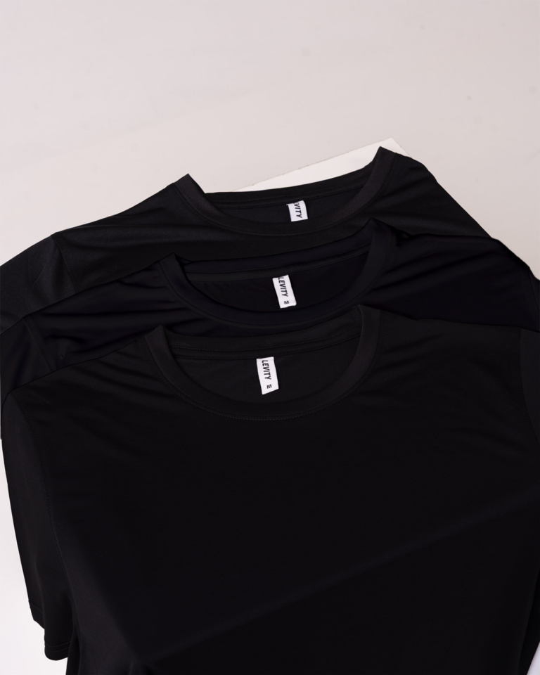 Denne produkten inneholder 3 svarte funksjons-T-skjorter.