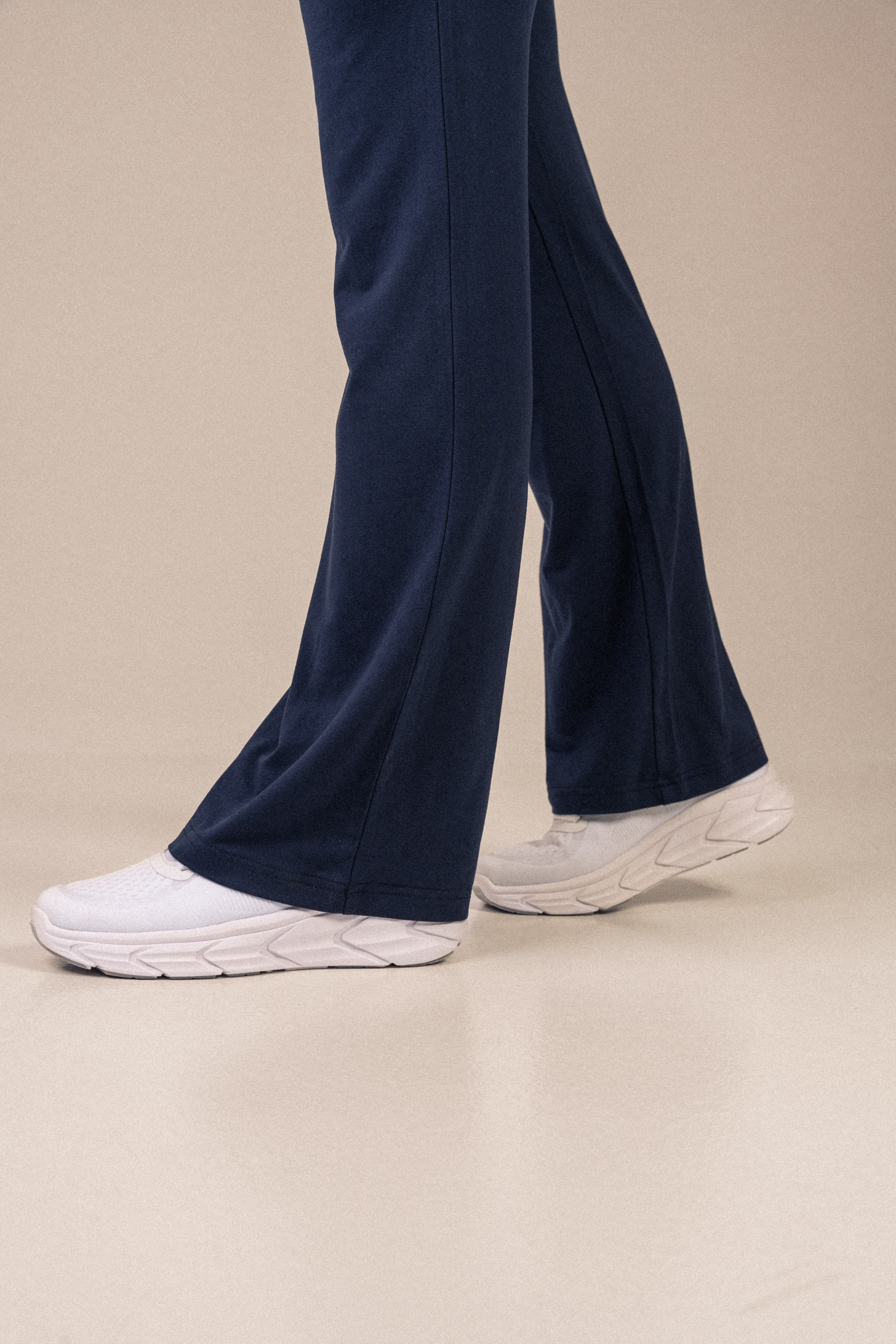 Myke og lette yogabukser som kan fint brukes i hverdagen. Passer fint til dansing, yoga og til bruk på treningssenter. Buksene har høy og elastisk midje med justerbar snor. Den har en stretchy stoff som er formtilpasset og hudnær fra kneet og opp, slik at du får flatterende effekt på bakdelen. Bena er rettskåret, og gir deg en veldig stilig look som både er moderne i forhold til trenden og retro, basert på 1990-tallet. Hvor nederste delen av bena ligner flarebukser.