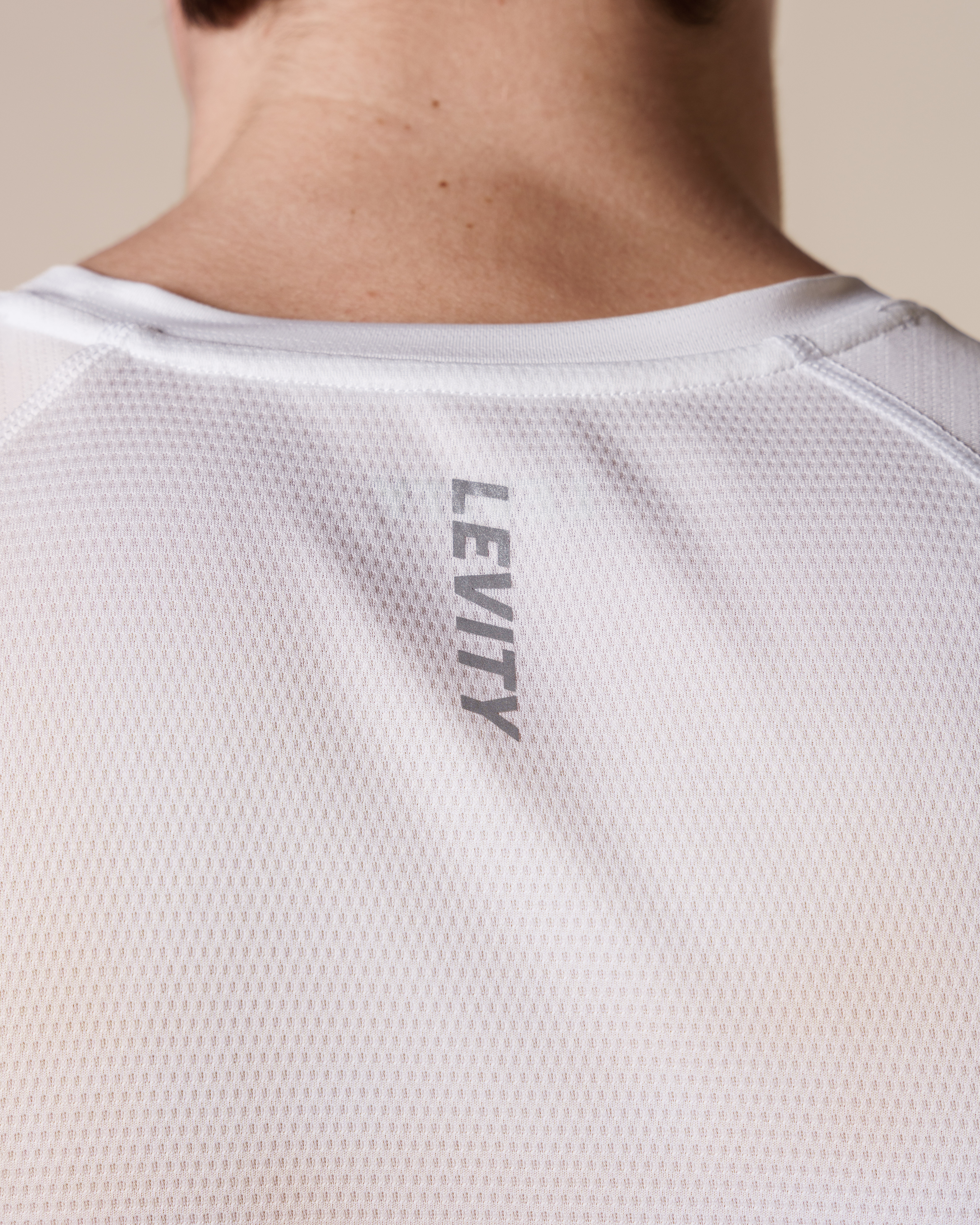 T-skjorten har et stilrent design med en subtil Levity-logo i svart refleks på venstre bryst, samt en refleksstripe på ryggen for ekstra synlighet. Refleksdetaljene gjør den perfekt for trening i lavt lys eller mørke forhold, og øker sikkerheten under løpeturer og utendørs aktiviteter.