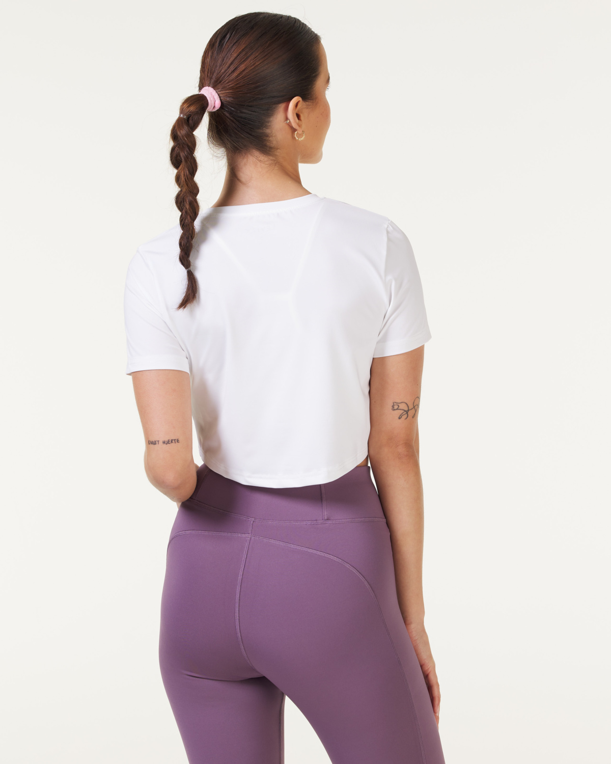 Crop Tee i komfortabelt og funksjonelt materiale. T-skjorten har rund hals og korte armer. Logo print i front.
