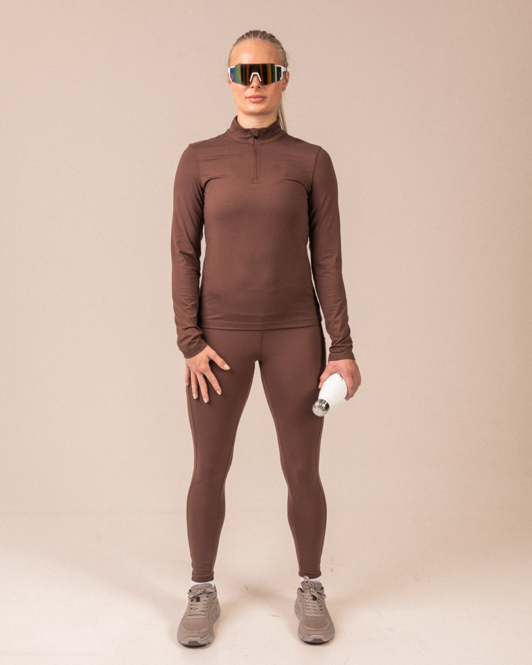 Sett med LEVITY Essential 1/4 Zip Jacket Brown Pine og LEVITY Second-Skin Pocket Tights Brown Pine
