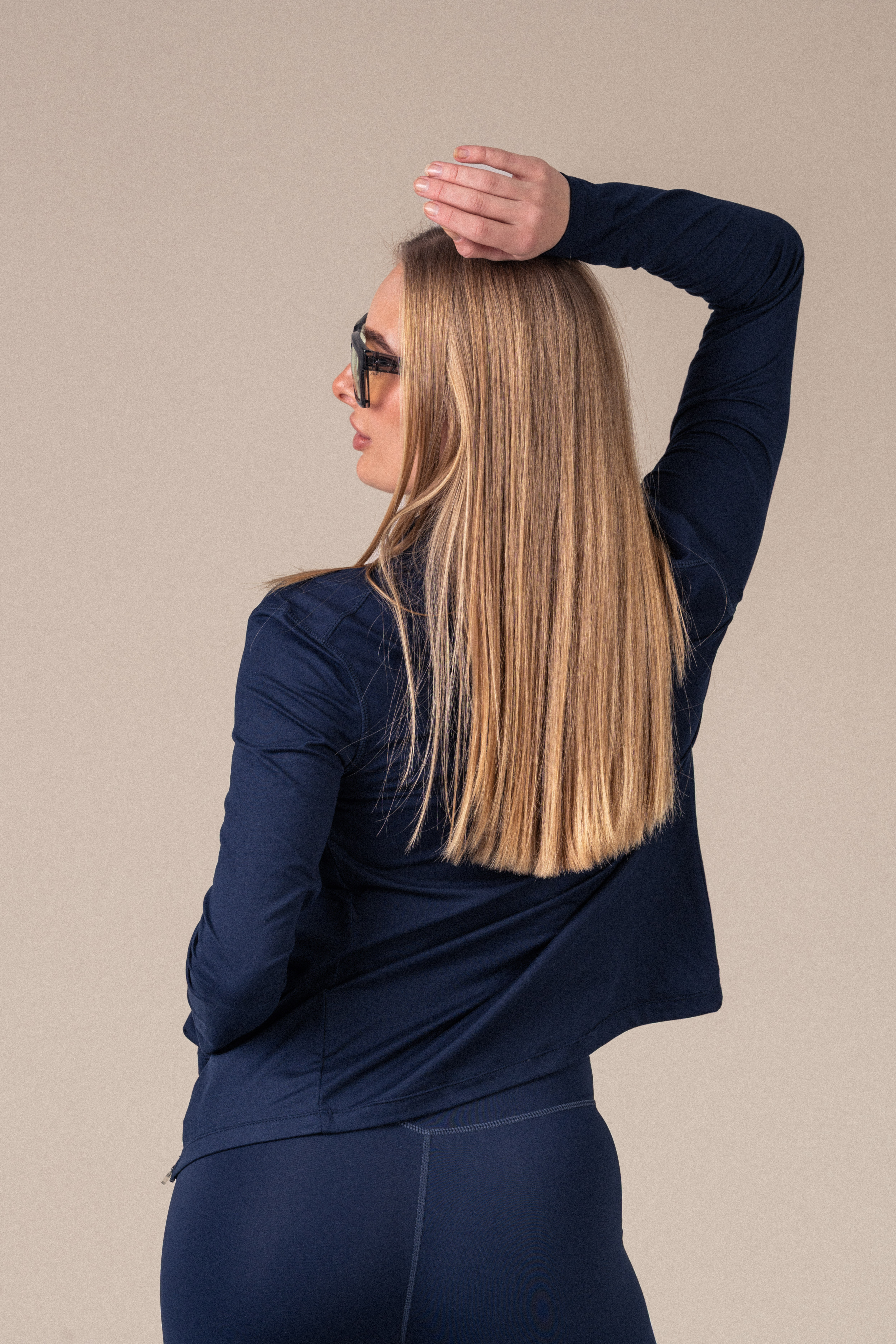 Det myke og elastiske materialet føles behagelig mot huden og følger kroppens bevegelser uten å føles stramt. Full glidelås og høy krage gir deg fleksibilitet og et rent, funksjonelt uttrykk.