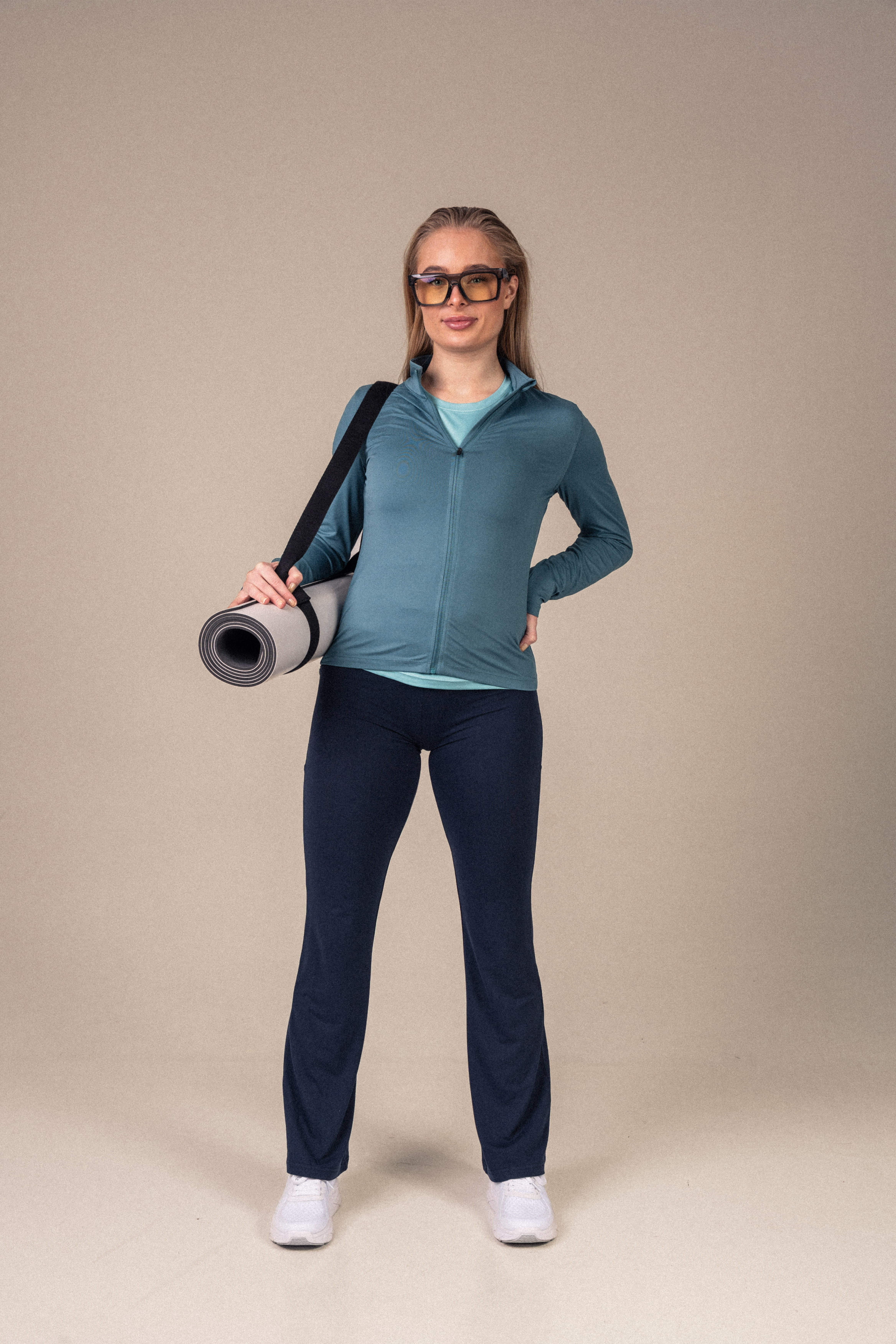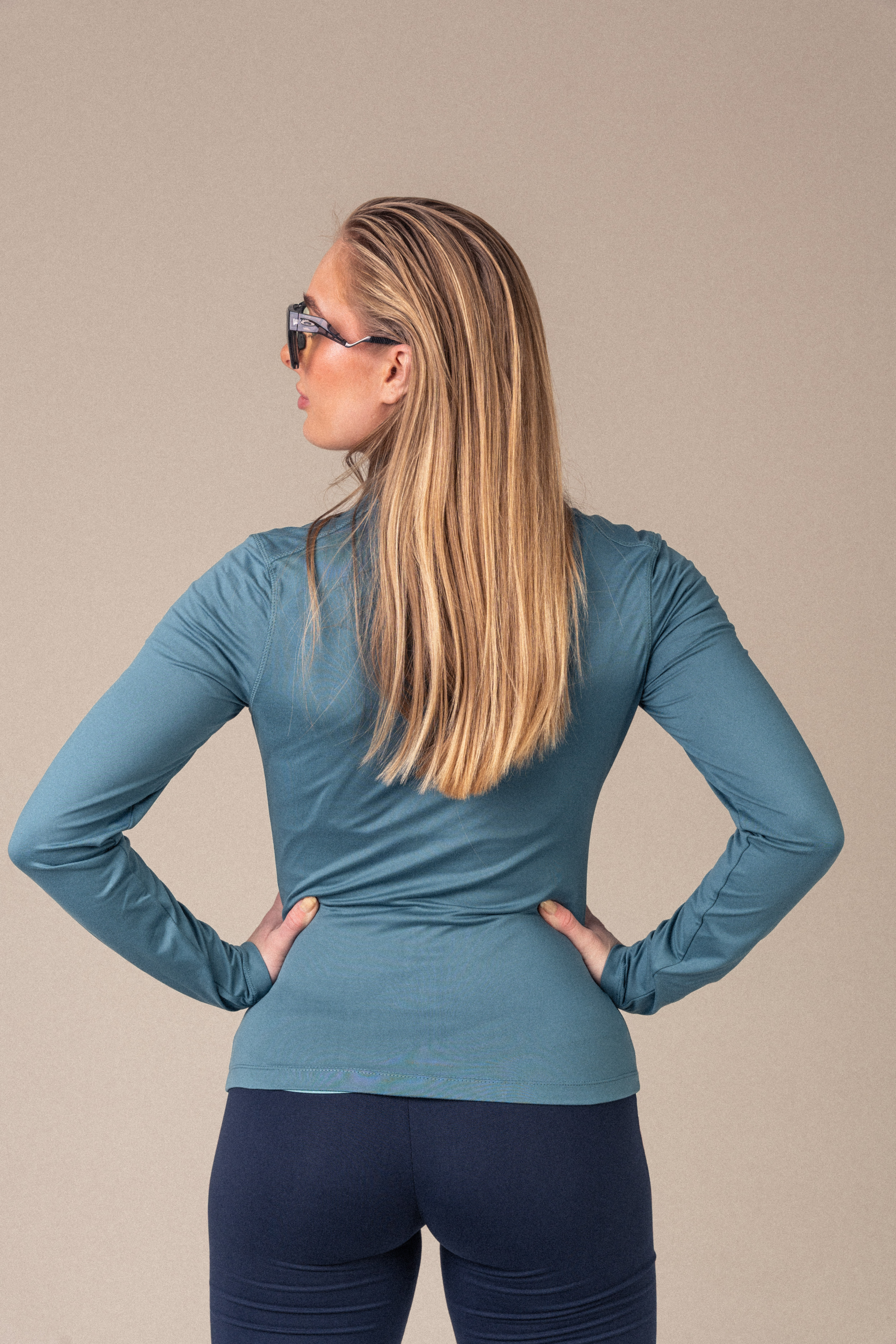 Det myke og elastiske materialet føles behagelig mot huden og følger kroppens bevegelser uten å føles stramt. Full glidelås og høy krage gir deg fleksibilitet og et rent, funksjonelt uttrykk.