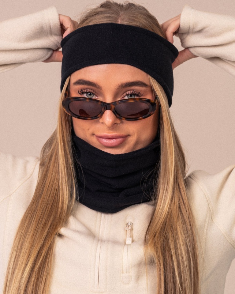 Sett med Fleece Neckwarmer Black og Fleece Headband Black