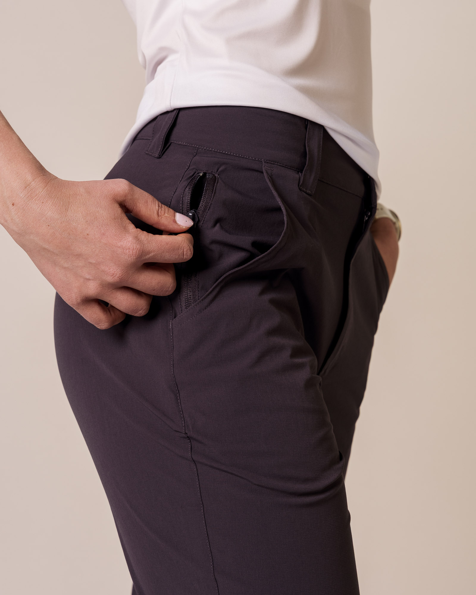 • Frontlommer + skjult glidelåslomme i høyre lomme