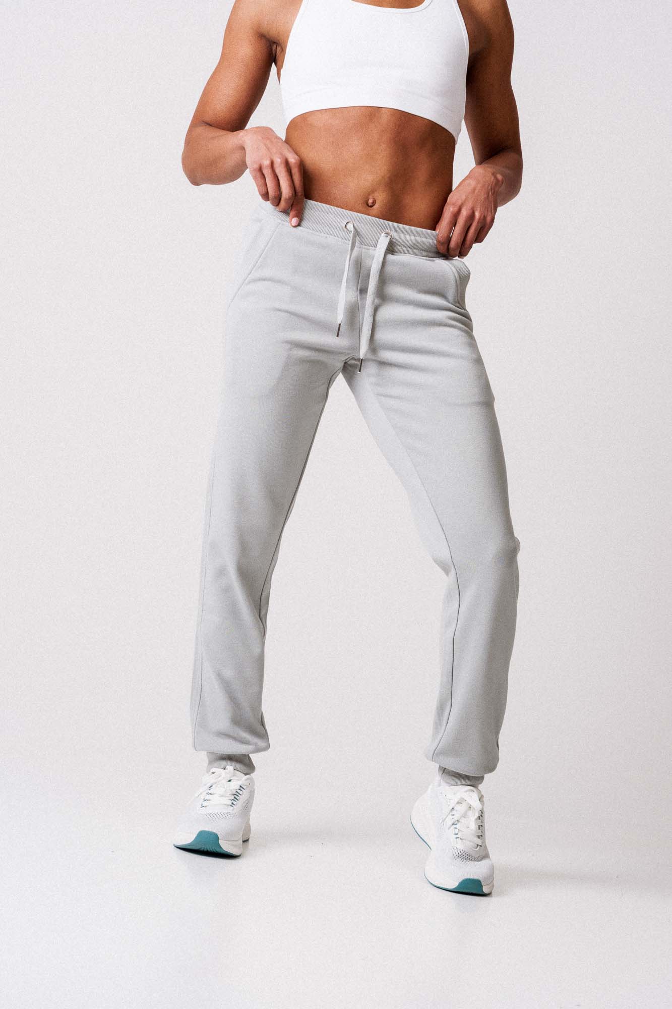 Stilfulle sweatpants i komfortabel french terry-stoff. Lommer i sidene med ribbet kant. Justerbar snøring i midjen og mansjetter i benenden.