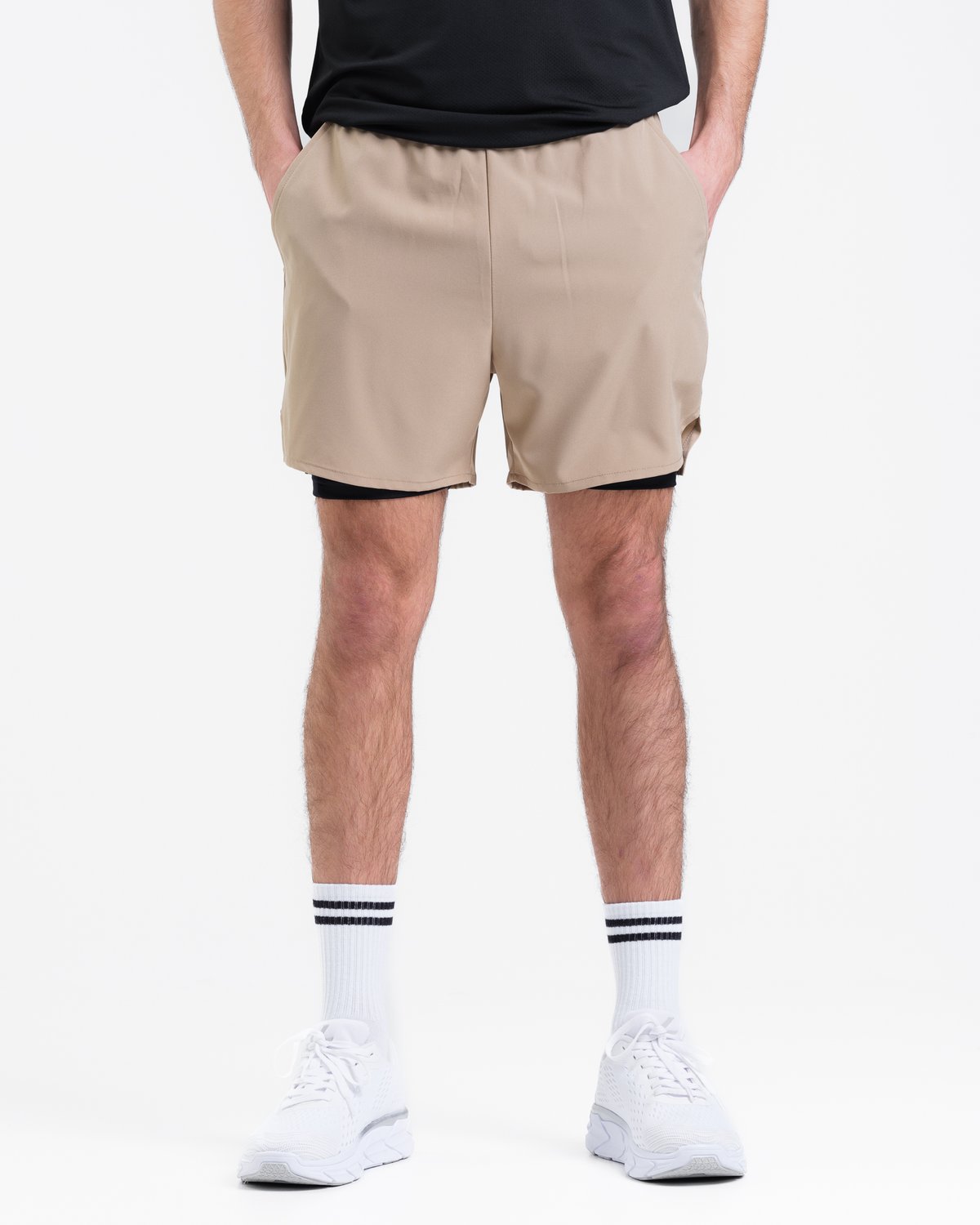 - LEVITY Hybrid 2-1 Pocket Shorts M Beige Dune: En moderne og lys farge som skiller seg ut på gymmet.