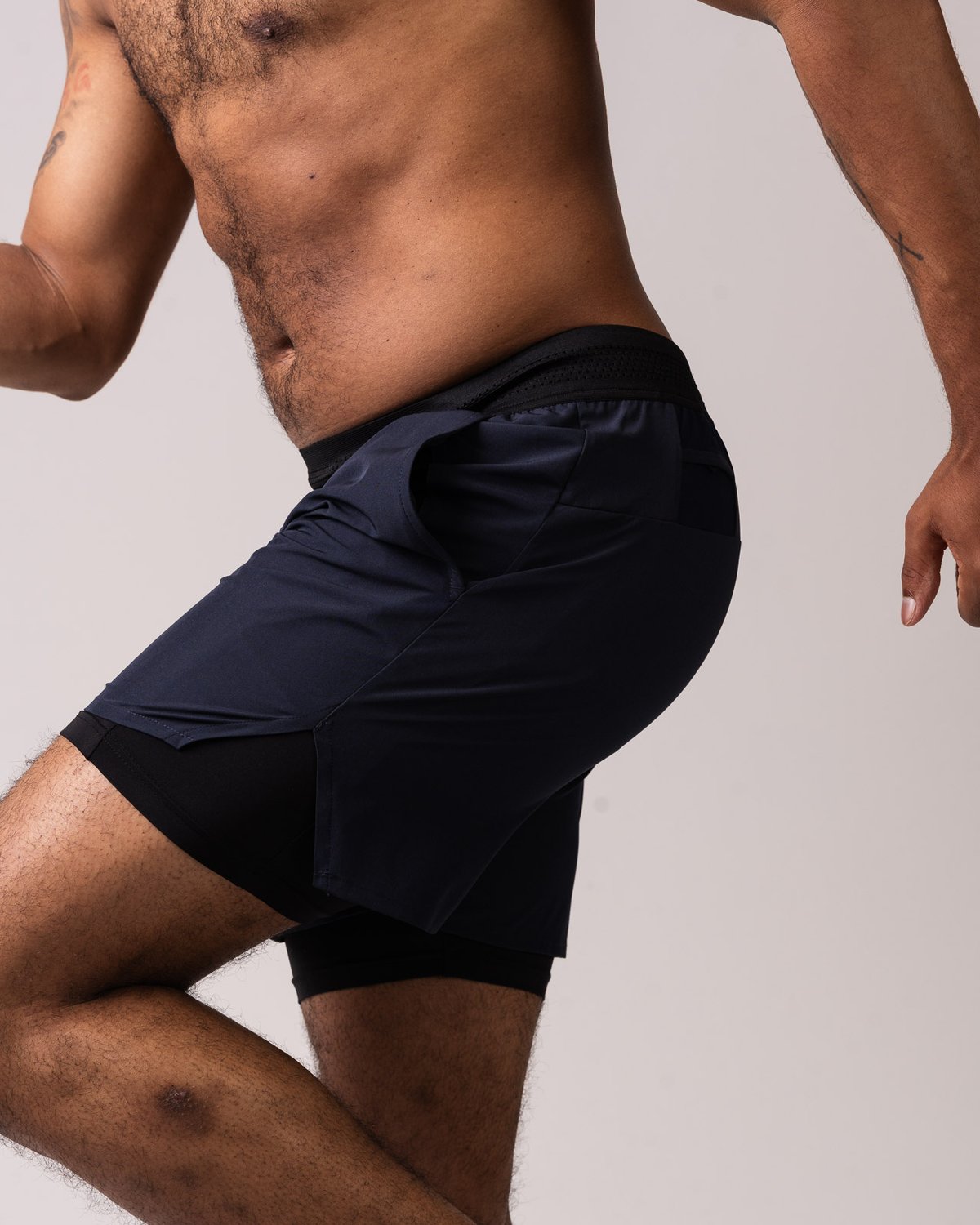 - LEVITY Hybrid 2-1 Pocket Shorts M Blue Navy: En klassisk og sofistikert mørkeblå farge for en stilren look.