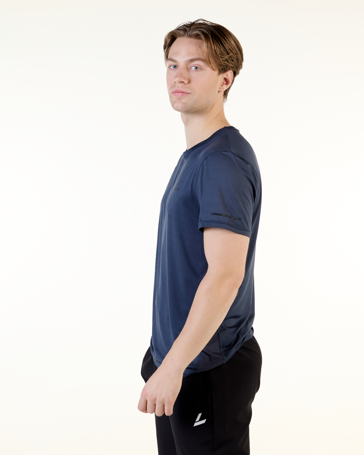 Vi er stolte av å presentere den nye herremodellen av LEVITY Legend Tee, en løpevennlig t-skjorte laget av tynn, behagelig og funksjonelt materiale med pustende meshpaneler på sidene for ekstra ventilasjon. Med en komfortabel rund hals og sømmer designet for minimal friksjon under aktivitet, gir denne t-skjorten den optimale løpeopplevelsen. Den diskréte L-logoen på venstre bryst og de reflekterende detaljene foran og bak sikrer synlighet under mørke treningsøkter.