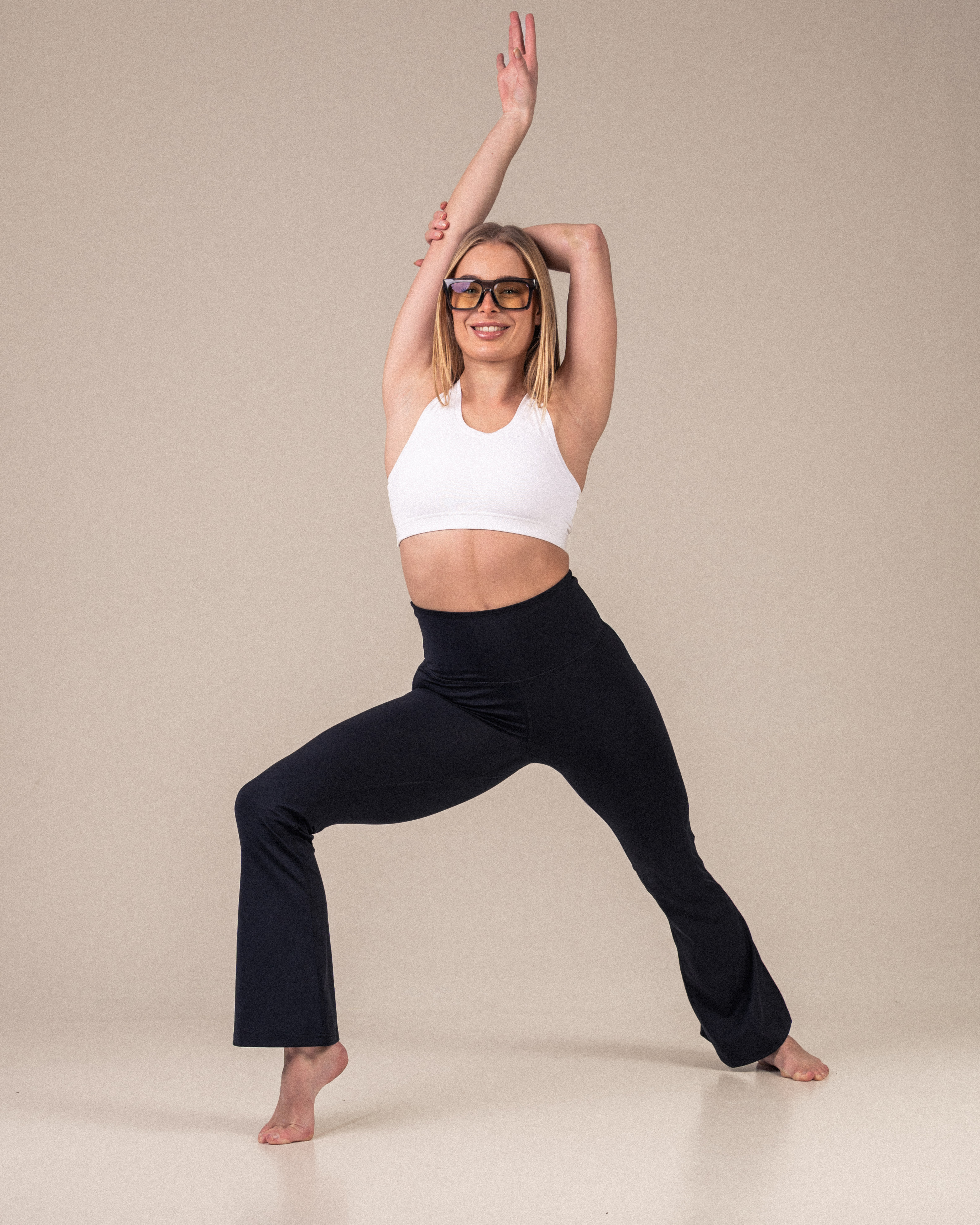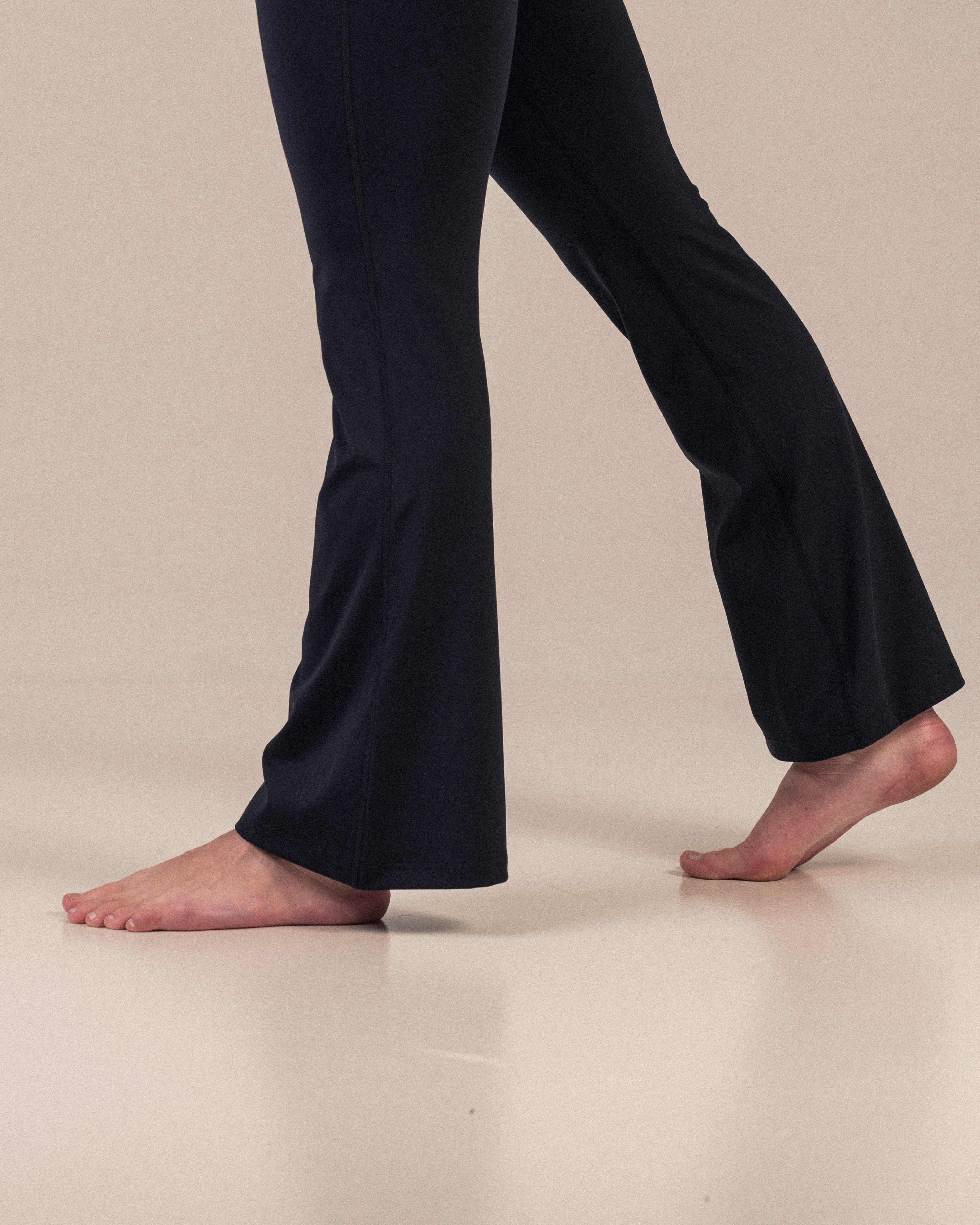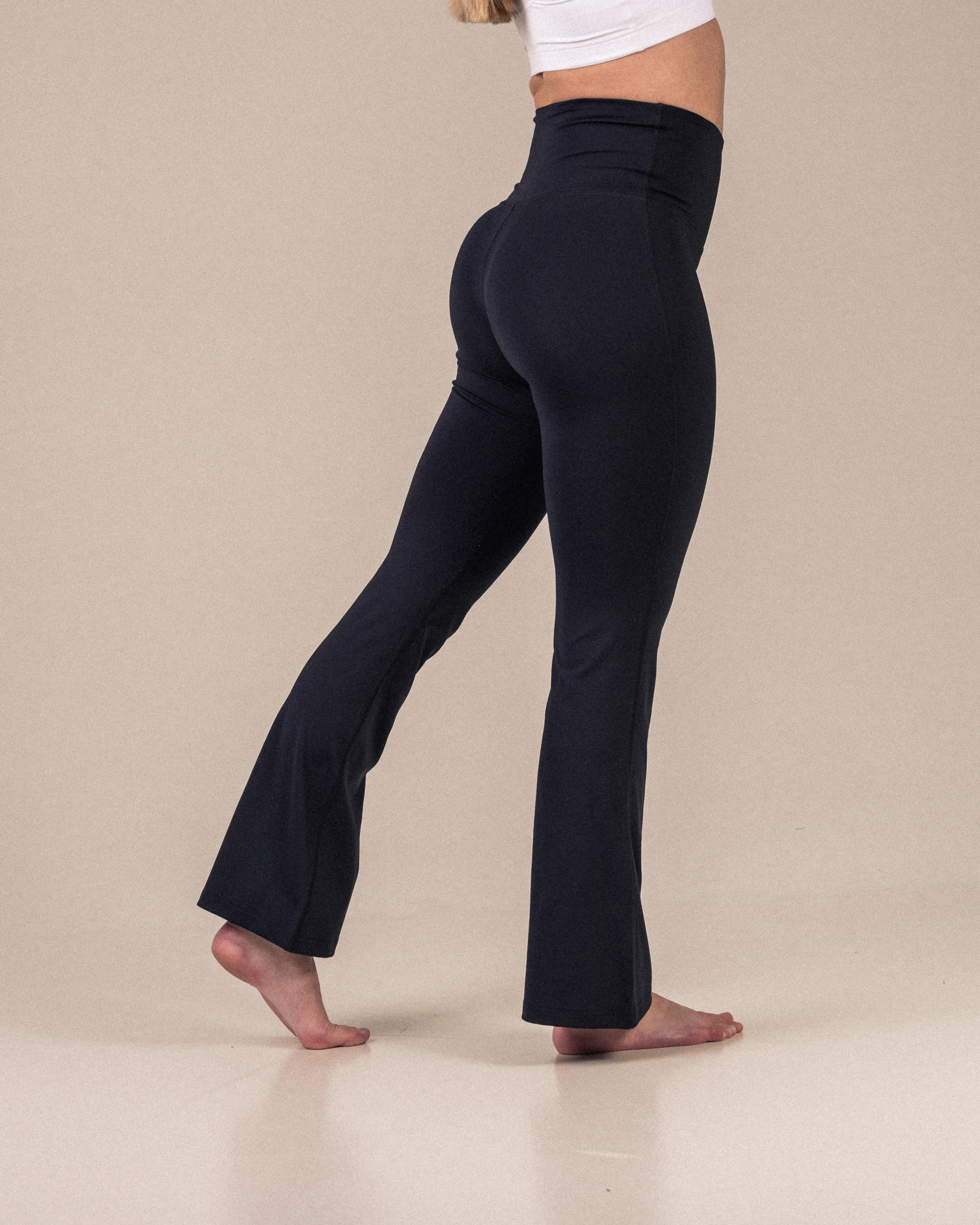 Flarebukser med høy midje med mesh på innsiden, som holder buksen opp uten at det føles klamt. Laget av materiale som holder deg sval og behagelig. God for lavintensitetstrening som yoga og barre, eller for en sporty chic hverdagslook.
