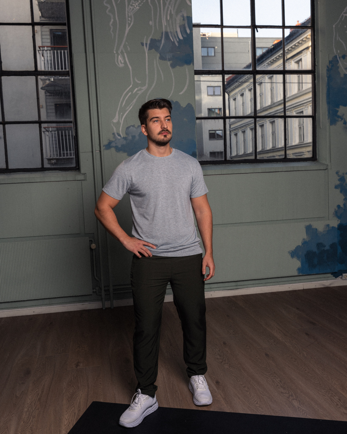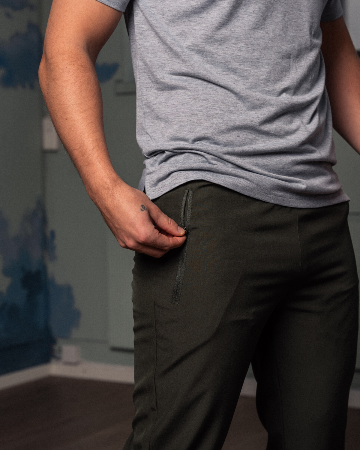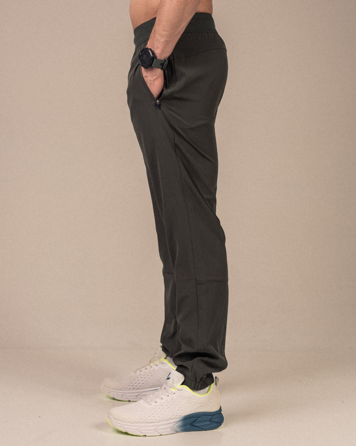 Joggebukser med glatt men matt stoff som ser utrolig stilig ut og er svært funksjonell. Buksen har elastisk midjebånd med justerbar snor, slank passform med sidelommer og elastisk mansjett nederst på bena. Buksen har en reflekterende, vertikal stripe på baksiden av leggene.