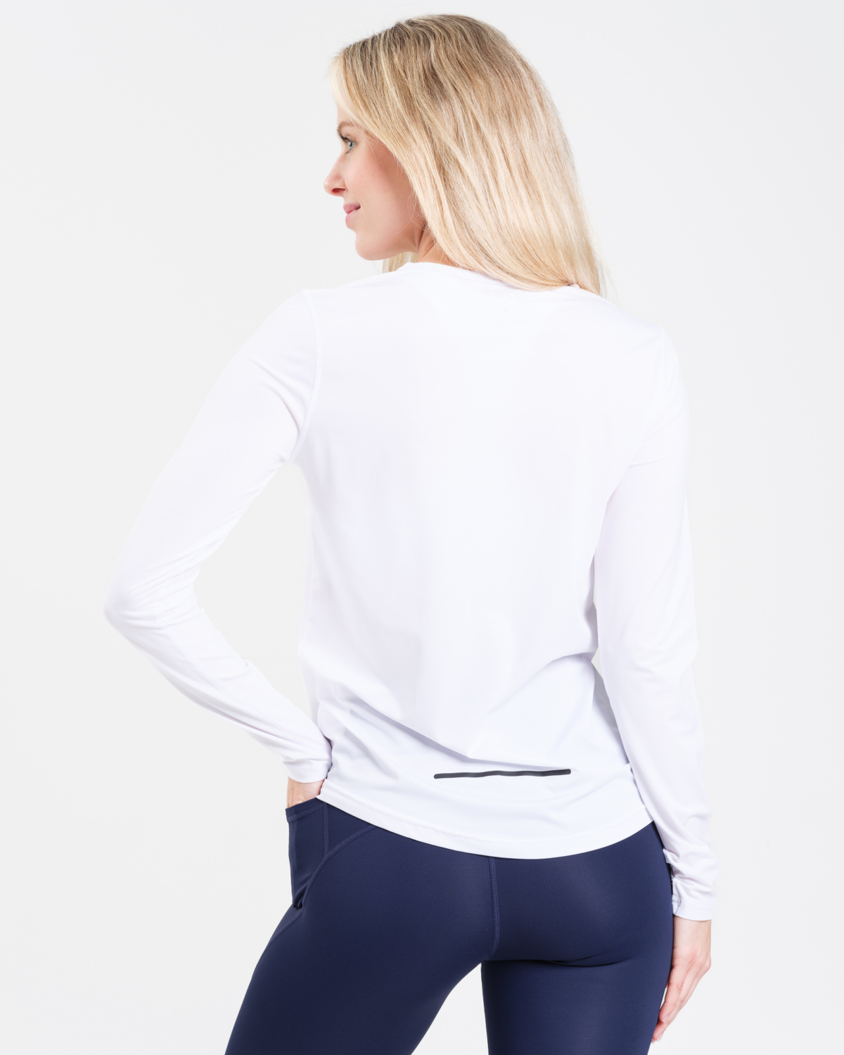 LEVITY Momentum LS er en langermet løpegenser designet for komfort, bevegelsesfrihet og synlighet. Laget i et lett og mykt funksjonsmateriale som puster godt og gir en flatterende silhuett – perfekt for løpeturer og annen trening.