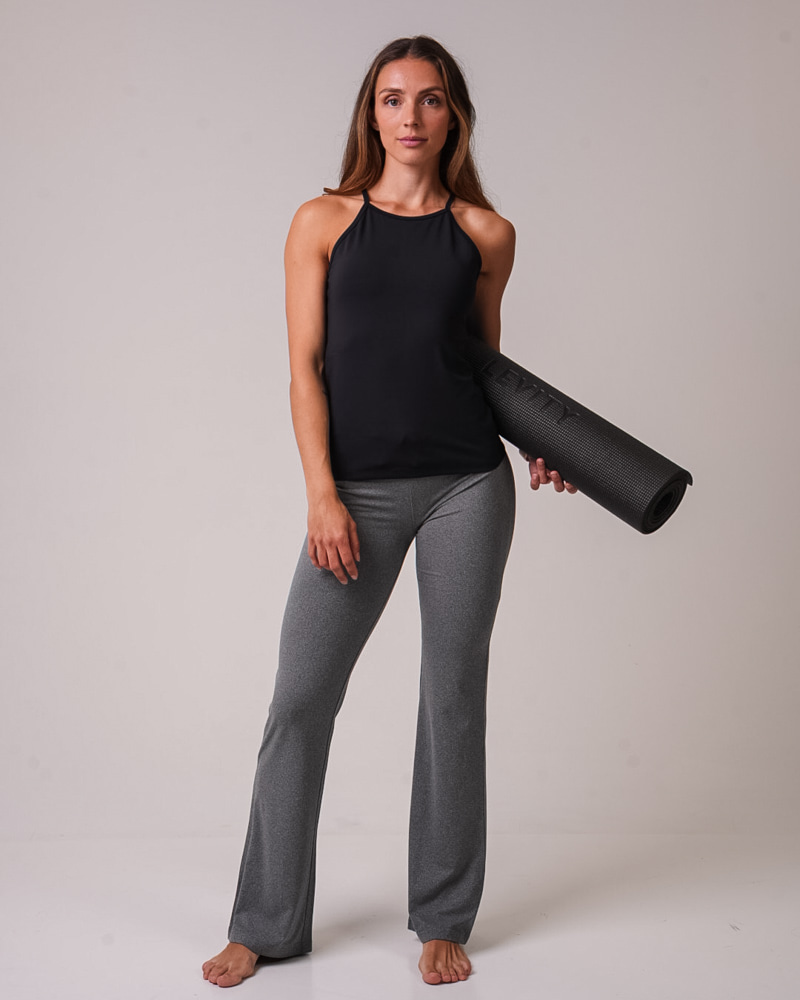 Stroppene møtes på midten bak gir et feminint preg og sørger for at toppen sitter godt på plass. Stoffet er hurtigtørkende og fukttransporterende, perfekt til både høyintensiv trening og roligere økter.