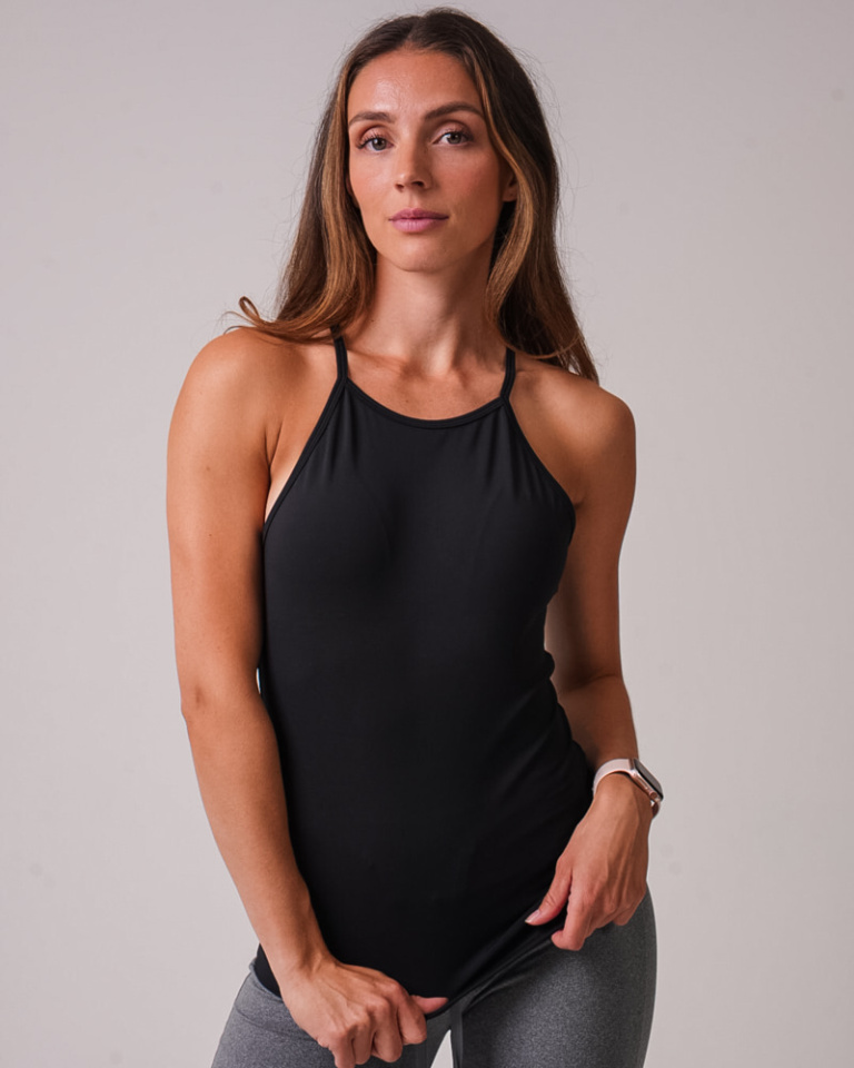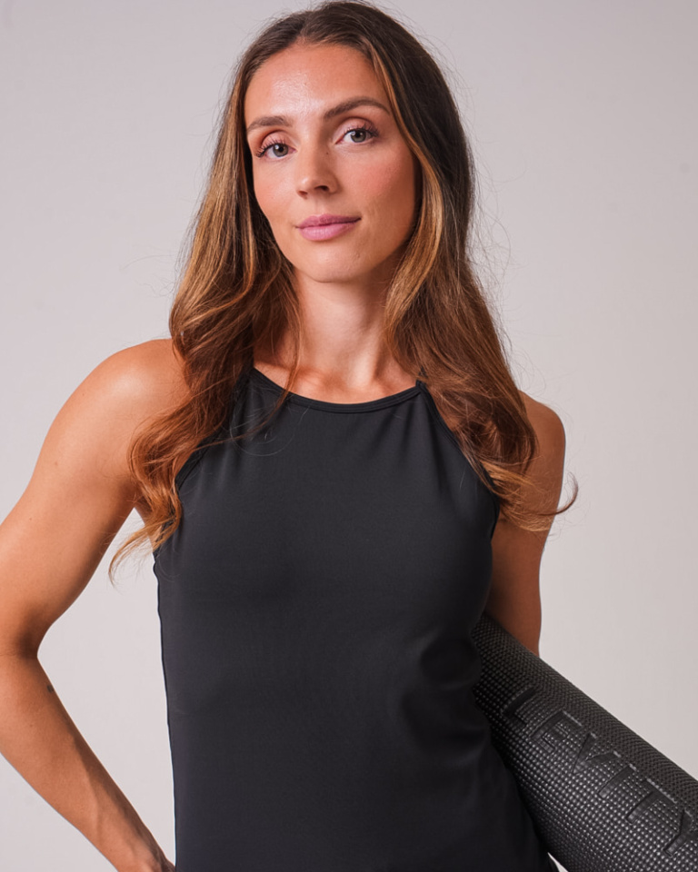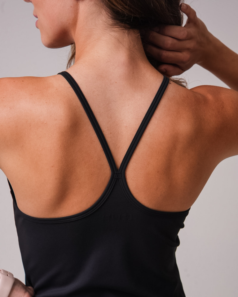 *Vennligst merk at modellen har på seg Vamp Seamless Bra i svart under toppen, denne er ikke inkludert i toppen. Primary Strap Tank har ett skulderbånd på hver side.