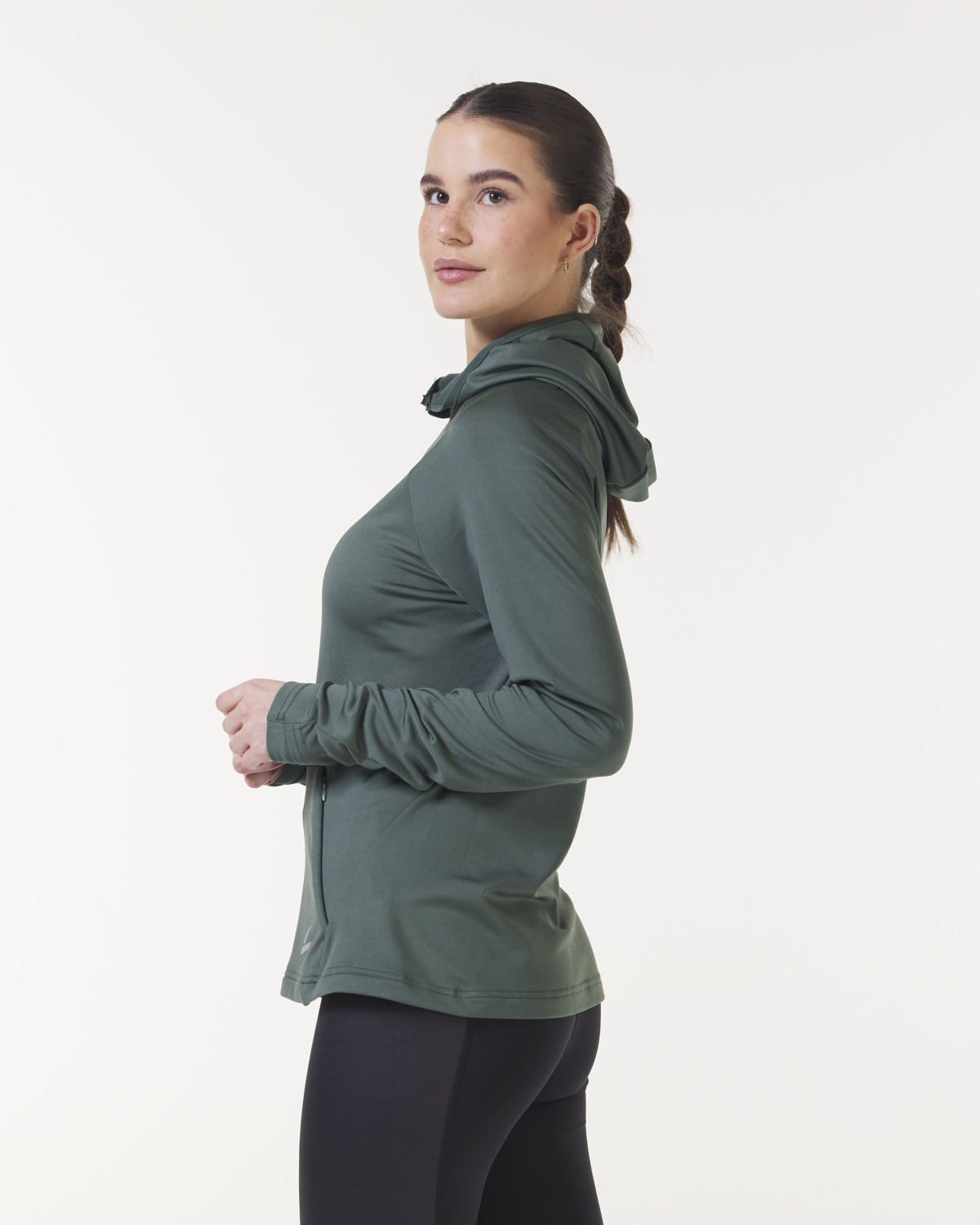 Hettegenser som er spesialtilpasset for løping, den har høy hals og glidelås. Elastikk rundt hetten og tommelhull nederst på ermet. Lomme i siden og i front med skjult glidelås. Logo og skrift er i refleksmateriale for bedre synlighet ute. Passende til alle former for løpeaktivitet, men også til trening generelt.