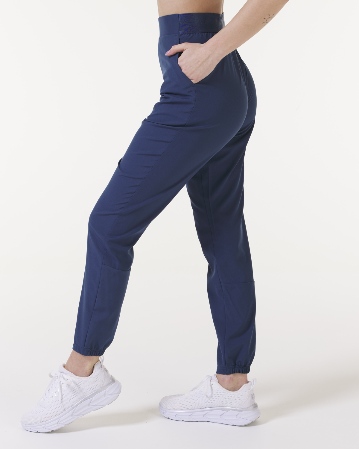Treningsbukser som er tilpasset gymmen og som er form fit, litt løsere i passformen, har en høy midje i form av en elastisk bånd med små L-logoer på som går hele veien rundt. Sidelommer der åpningen kommer litt skrått ned, innsydd del som går over toppen av baksiden som en søm. Og en søm som går på tvers av baksiden av leggen. Silkemyk, pustende materiale som er hurtigtørkende, fleksibel og bevegelig. Buksene passer til trening inne og ute.