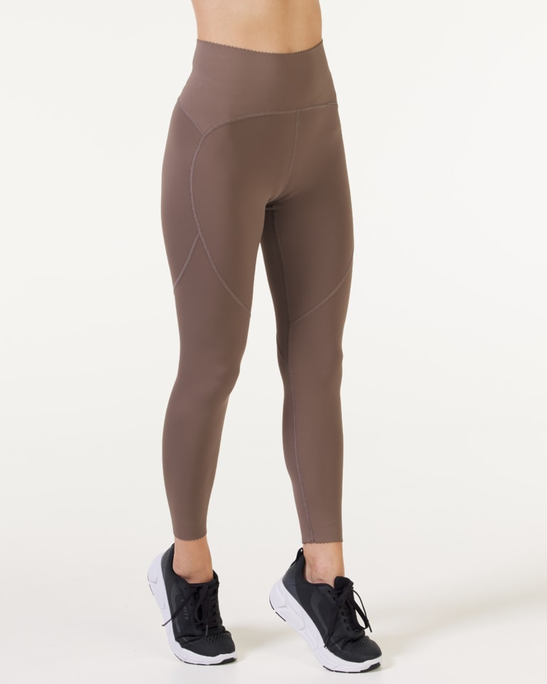 Tights med dekorative sømmer rundt midjen og lårene, benet har ingen søm på ytre side. Waistbandet er høyt og scallop kutt detaljer. Benenden har også scallop detaljer.