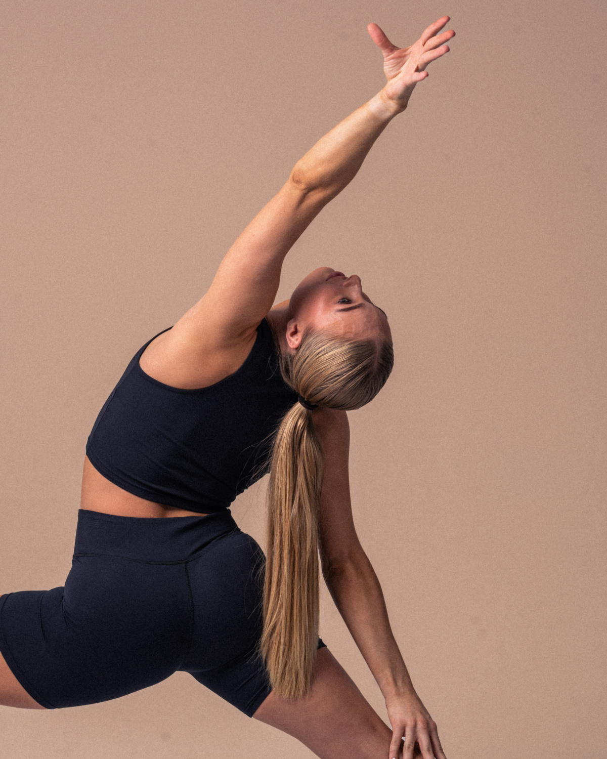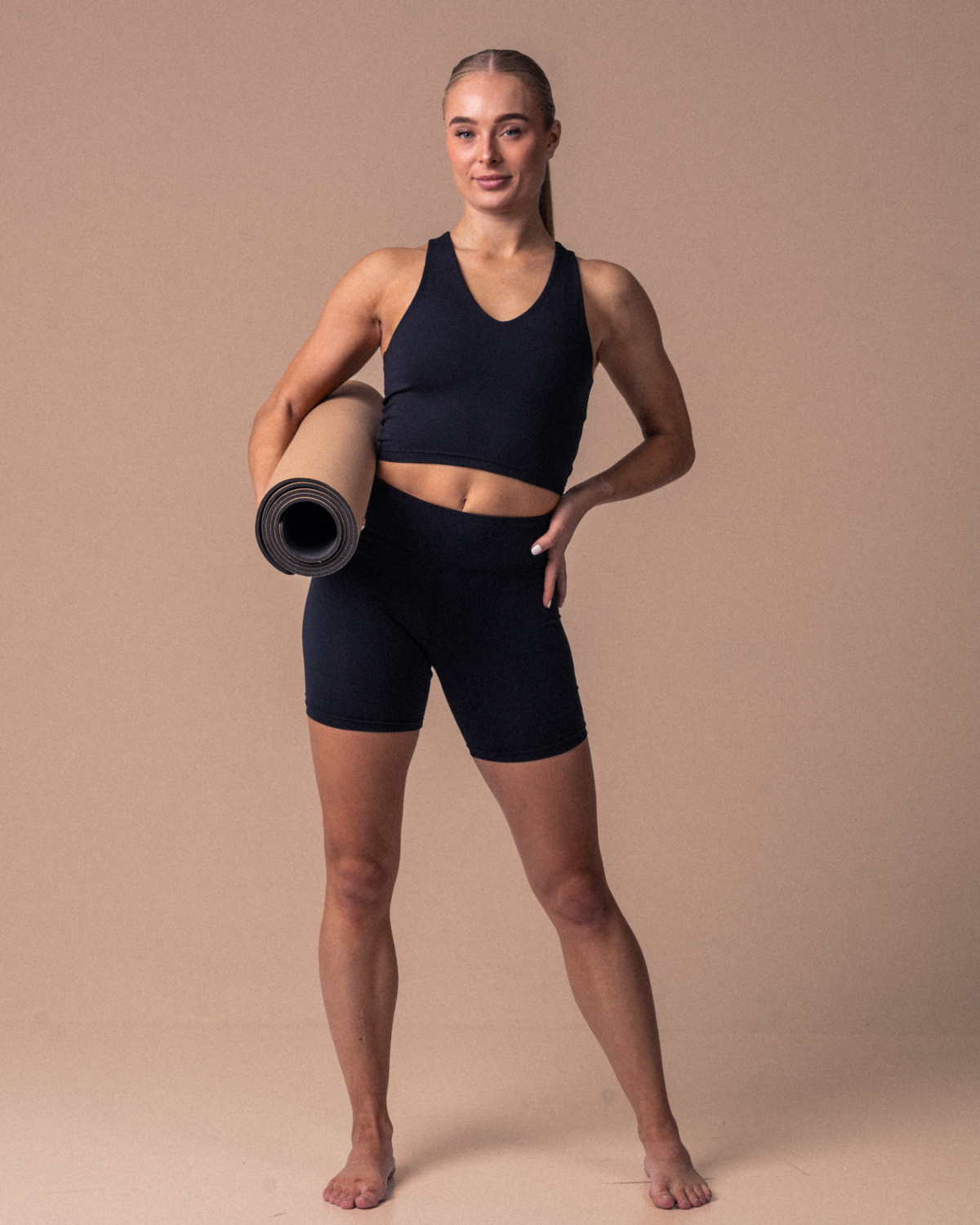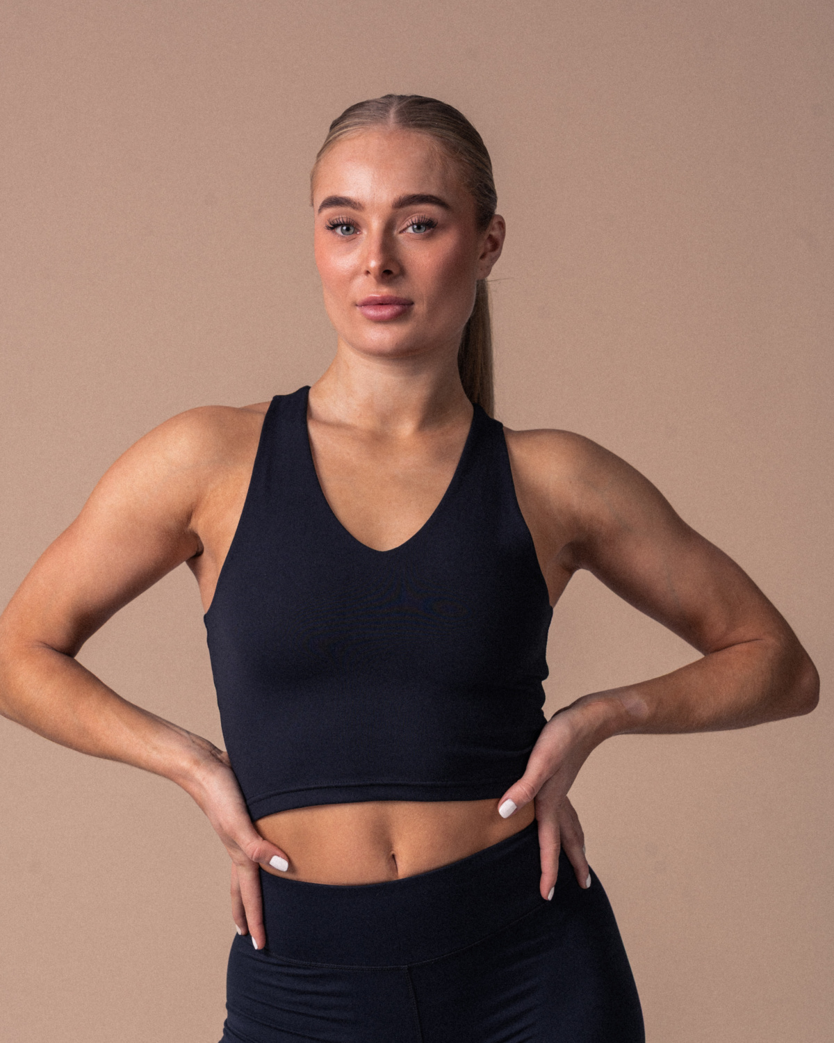 Second-Skin crop top er i mykt materiale med en tettsittende passform. Den har en "V" formet hals, og racerback. Svært behagelig topp for både trening, yoga og til bruk i hverdagen.
