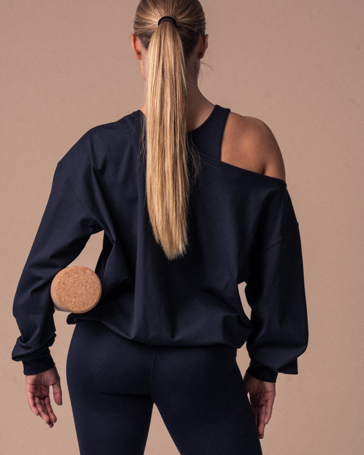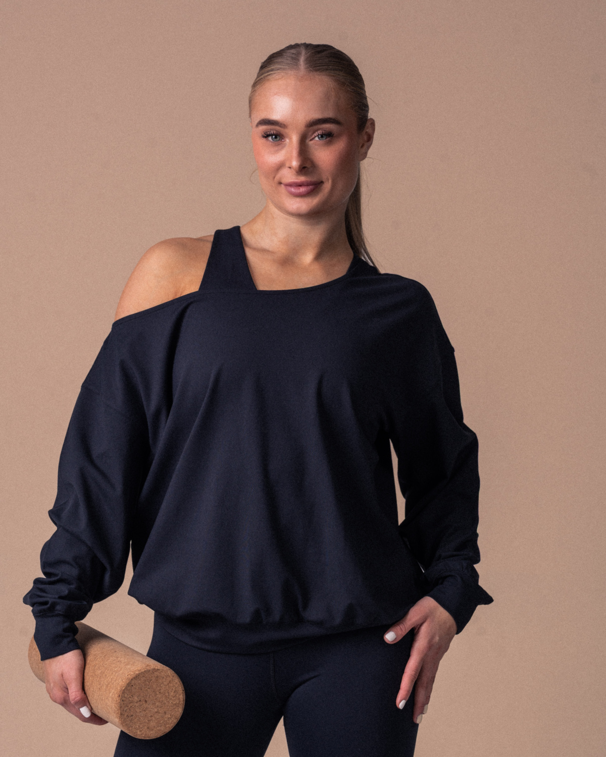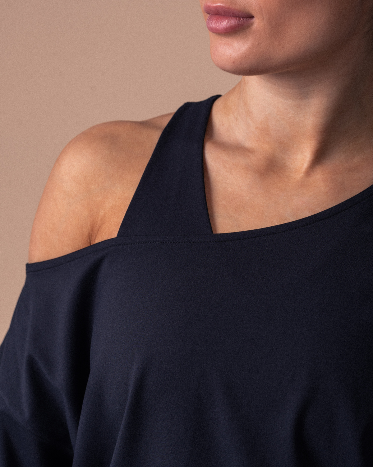 Langermet genser i et mykt materiale. Behagelig passform med "off shoulder" på høyre side.