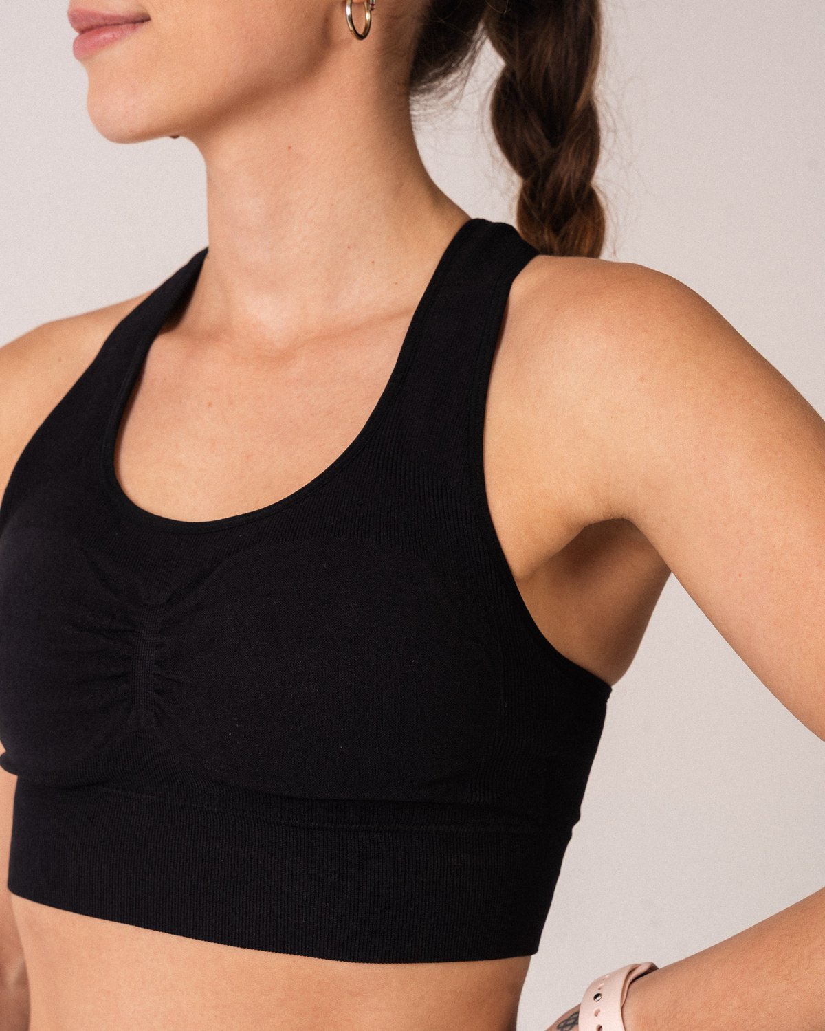 - LEVITY Silhouette Seamless Bra Black: En stilren sports-BH med medium støtte, perfekt for alt fra styrketrening til yoga. Det elastiske materialet er både pustende og hurtigtørkende, noe som sikrer at du holder deg sval og komfortabel. Med sitt diskré design og sømløse konstruksjon gir den deg full bevegelsesfrihet uten ubehag.