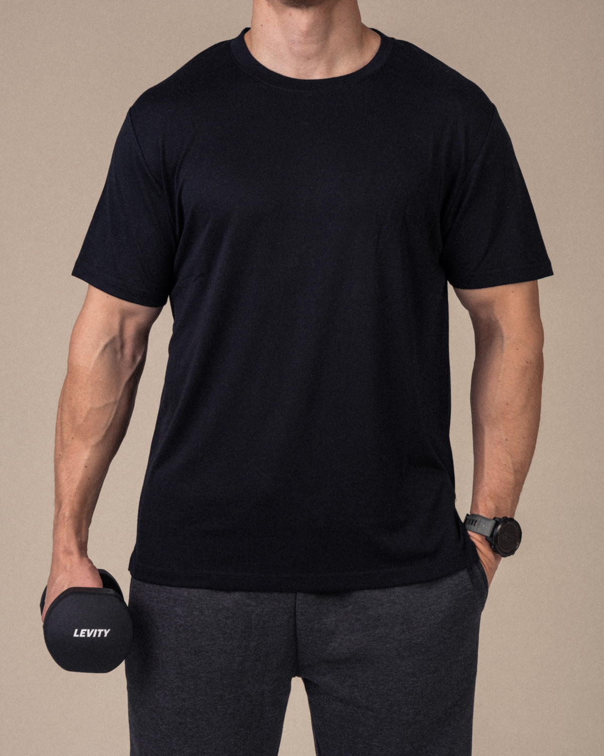 T-skjorte i myk bomullskvalitet, hurtigtørkende funksjonelt materiale som holder deg tørr og stilig under trening. Avslappet passform, helt clean uten logo.