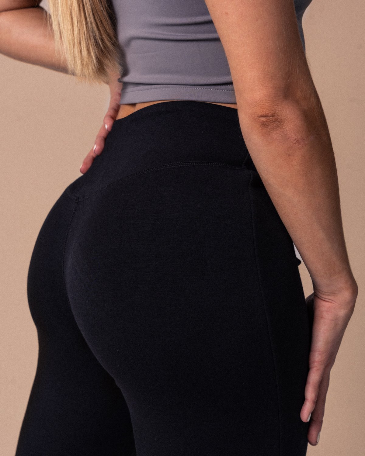 Opplev ultimat komfort på matten og i hverdagen. Disse yogabuksene er laget i ekstra myk og behagelig modal som føles som en andre hud mot kroppen. Den behaglige passformen kombineres med et flatterende, lett V-formet design bak som fremhever silhuetten uten å gå på kompromiss med komforten.