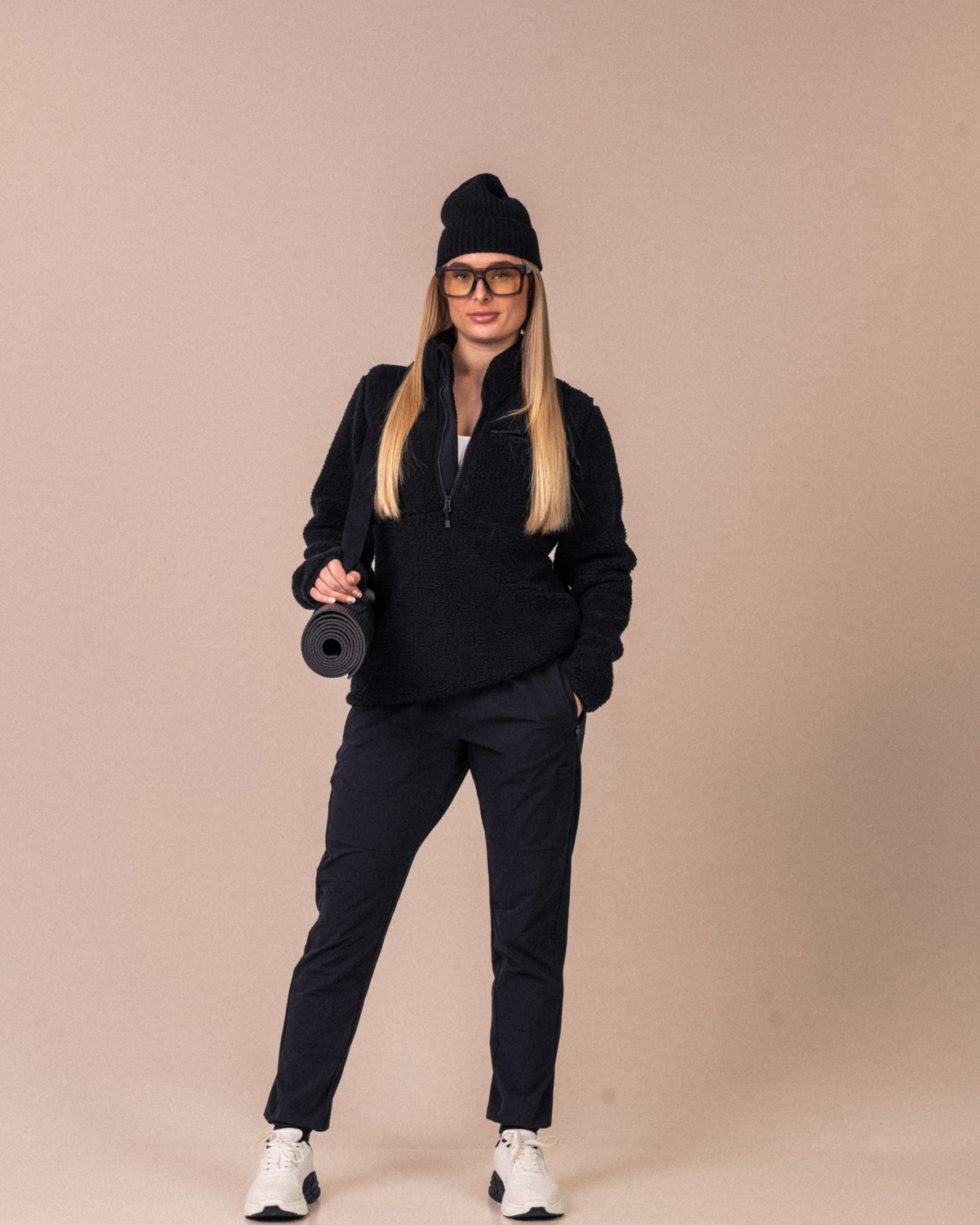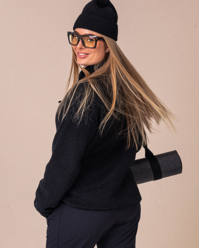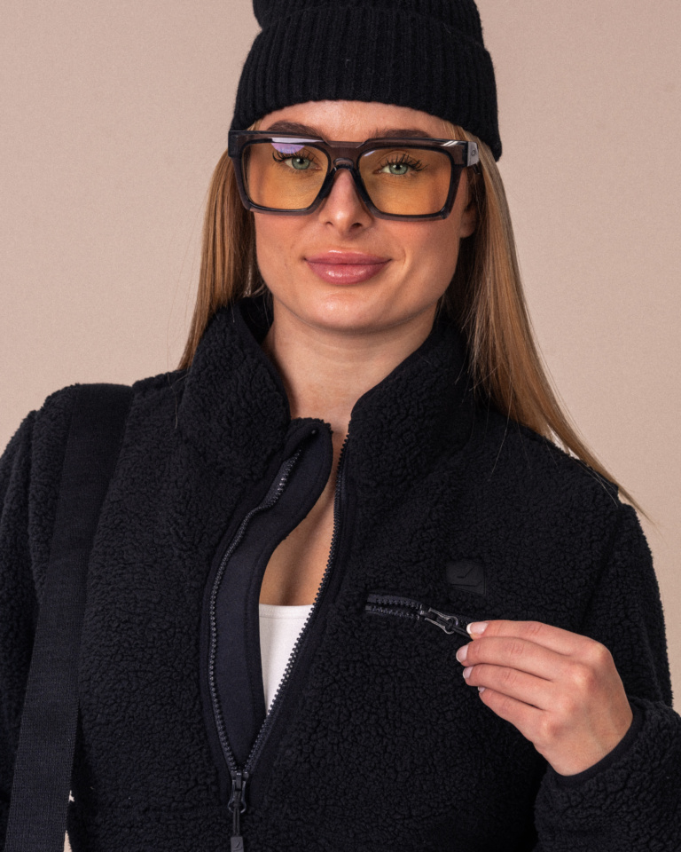 Genser med middels høy krage og lommer som er forseglet med glidelås. Praktisk lomme med glidelås på brystet som en fin detalj. Perfekt til å varme deg opp innendørs på kjølige vinterdager, eller å ha som genser om våren og høsten!