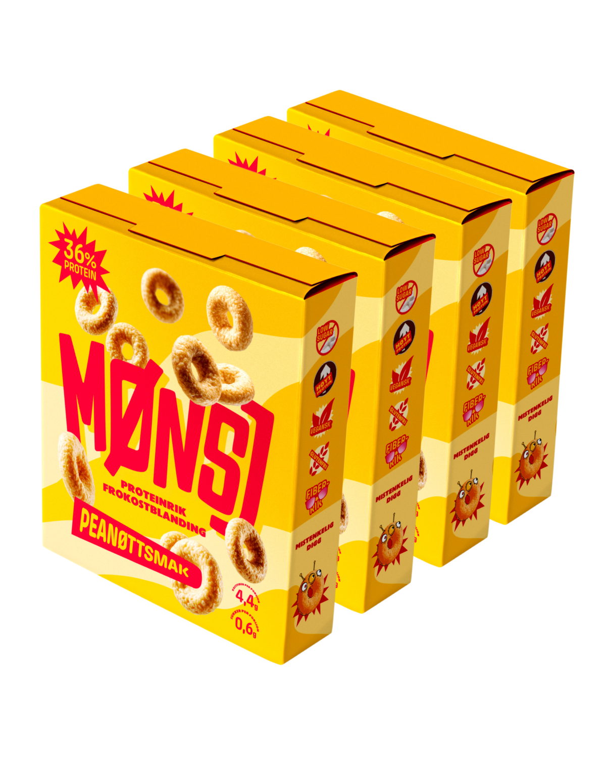 Smaker: Sjoko, Peanøtt, Cookies&Cream og Honning