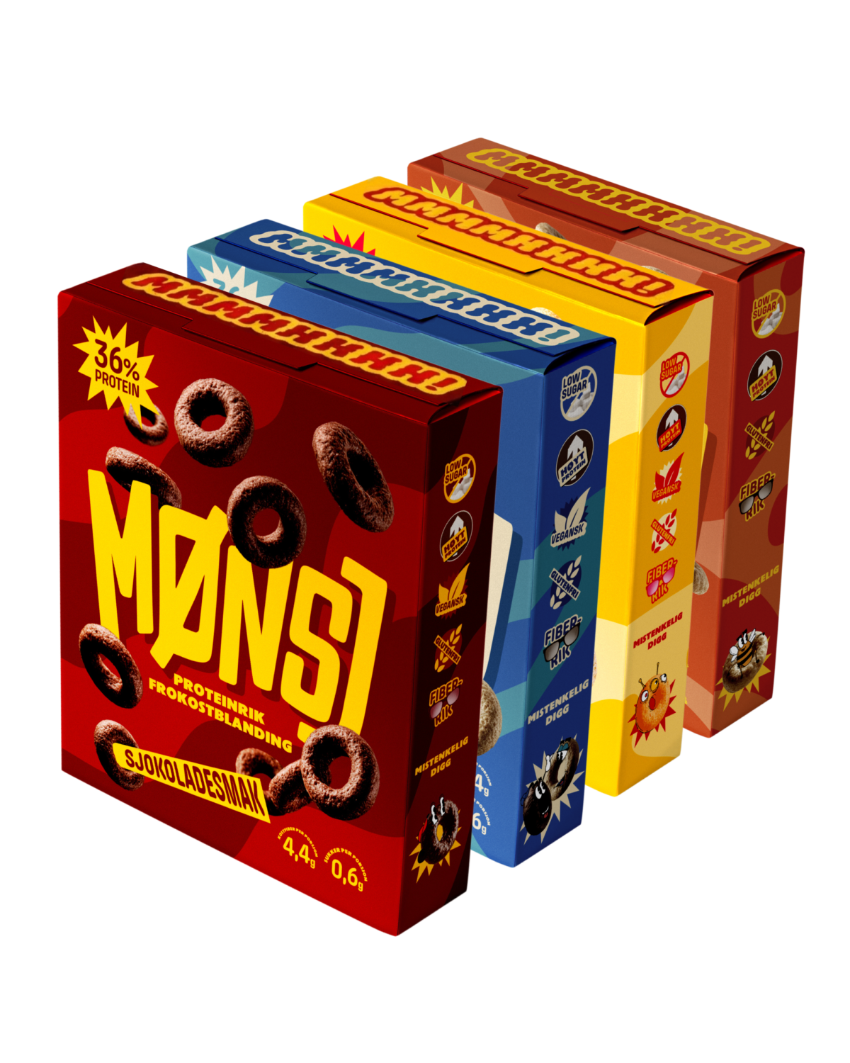 Smaker: Sjoko, Peanøtt, Cookies&Cream og Honning