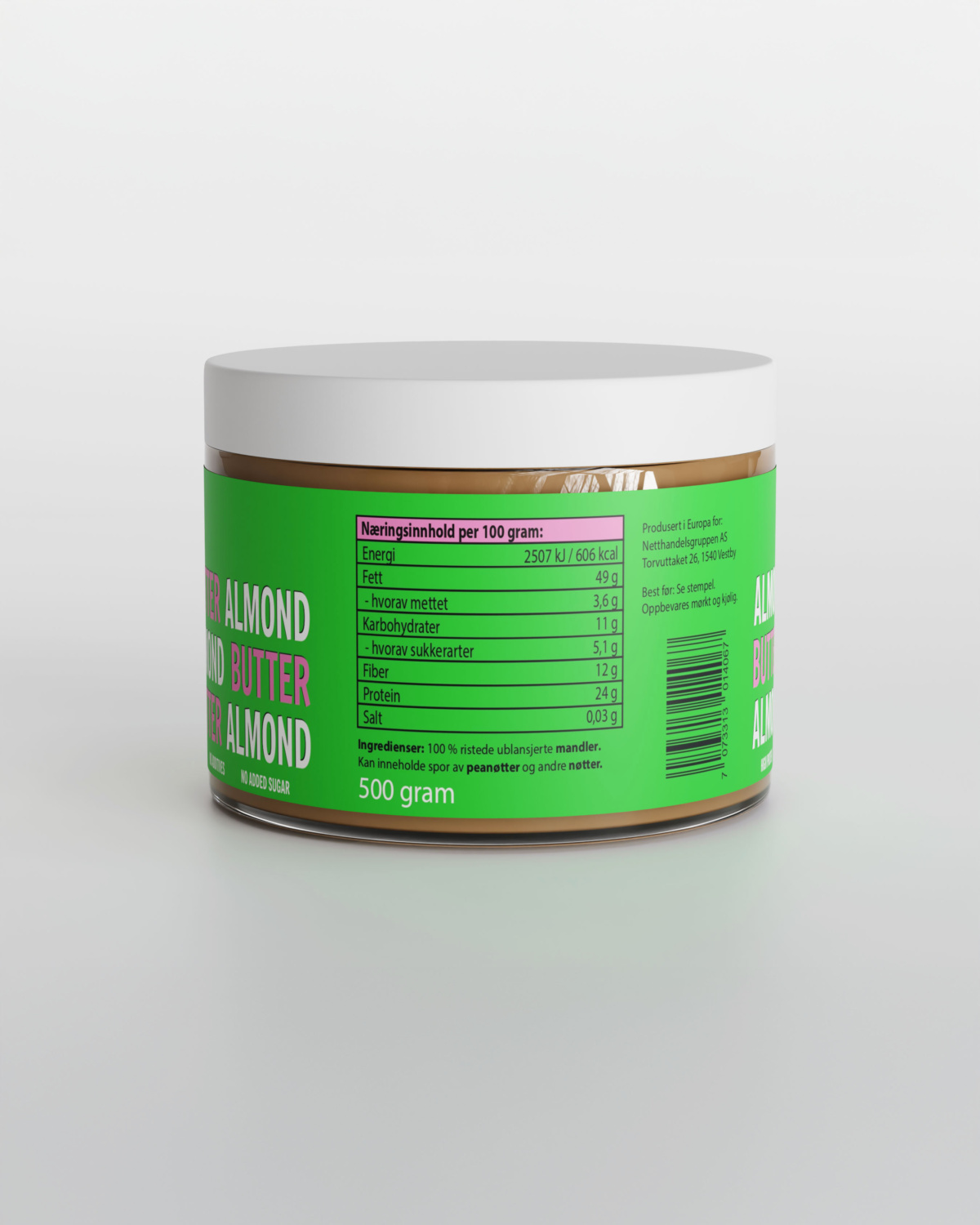Mandelsmøret fra Monster Supersnacks består av utelukkende mandler, uten ekstra ingredienser eller tilsatt salt. Bruk mandelsmøret på brødskiva eller i havregrøten. Eller kanskje helt for seg selv? Nam!