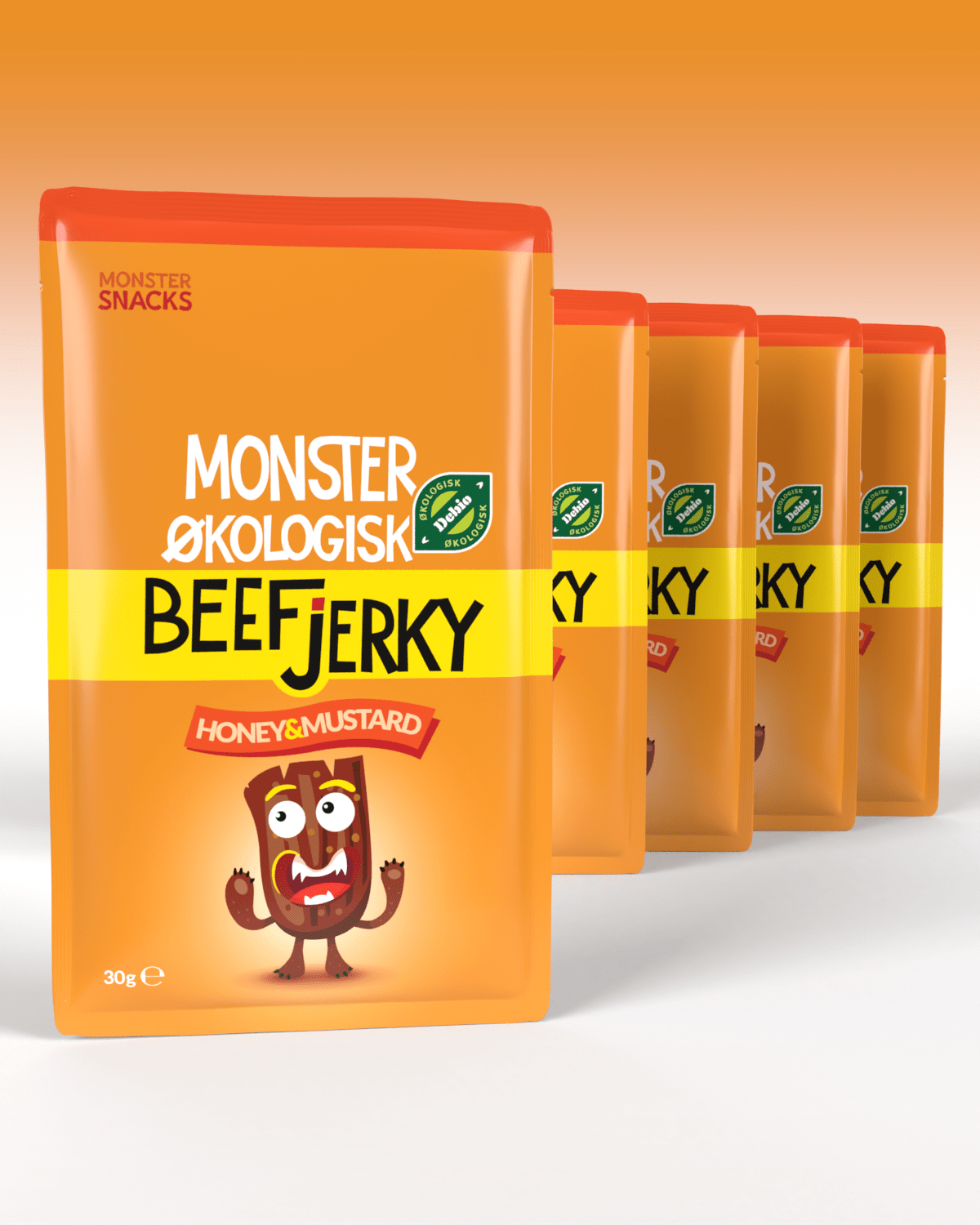 Monster Beef Jerky – Mustard Honey 5x30g – FEMPAKNING!