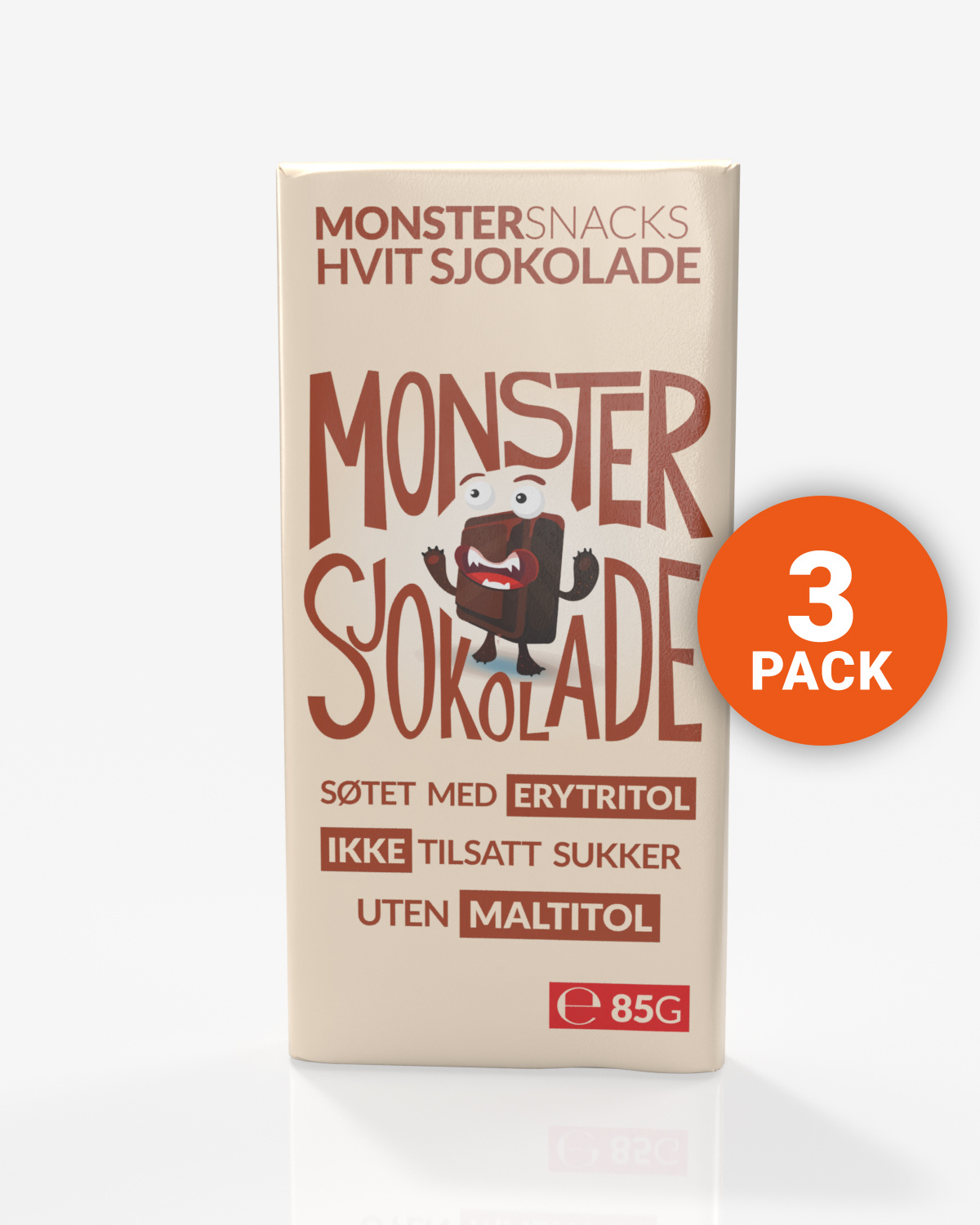 Monster Lavkarbo Belgisk Hvit Sjokolade 3x85g