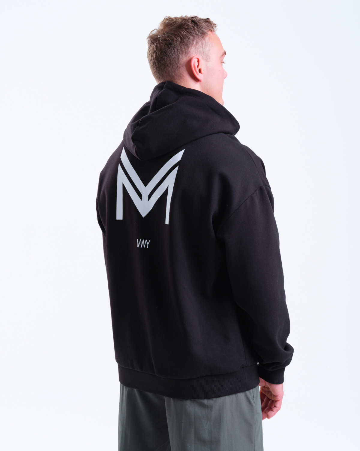 Hoodien er utstyrt med en romslig lomme foran på magen for praktisk oppbevaring eller for å varme hendene. Designet fremheves av en stor, synlig logo sentrert på ryggen, samt en mindre logo sentrert foran på brystet, som gir et sporty og tøft preg.
