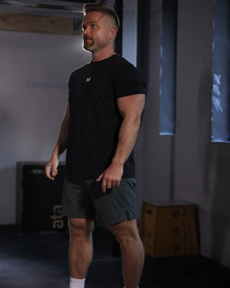 Passformen er nøye utformet for å sitte godt uten å føles trang rundt armene eller magen. Lengden er perfekt tilpasset slik at magen ikke vises ved over-hode-bevegelser, samtidig som den legger seg naturlig over shortsen for en flatterende og praktisk look.