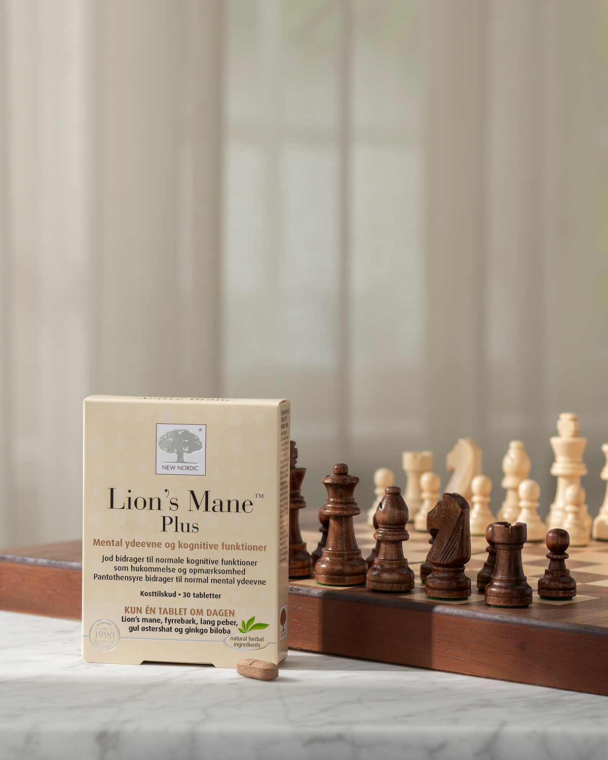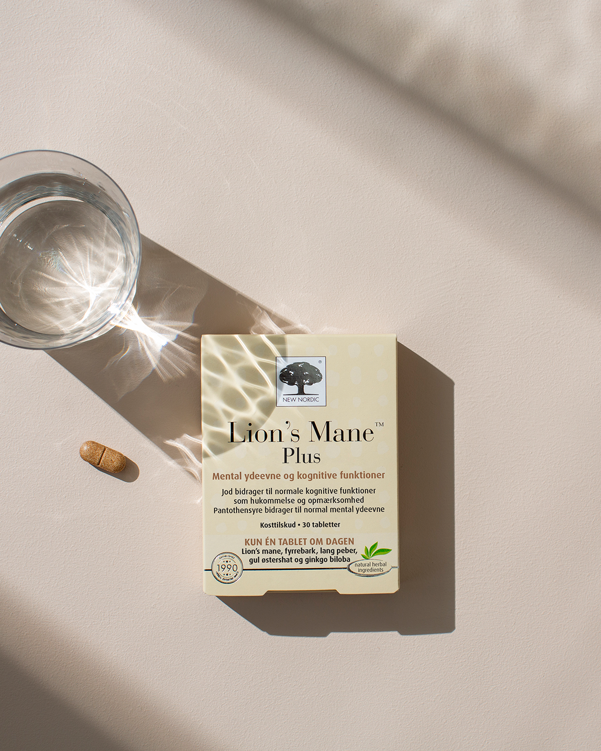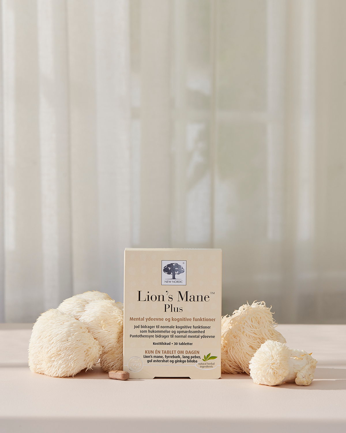 Lion’s Mane™ Plus inneholder ekstrakter av blant annet soppen Lion’s Mane, furubark og lang pepper. I tillegg inneholder den også flere B-vitaminer, samt vitamin D og jod.