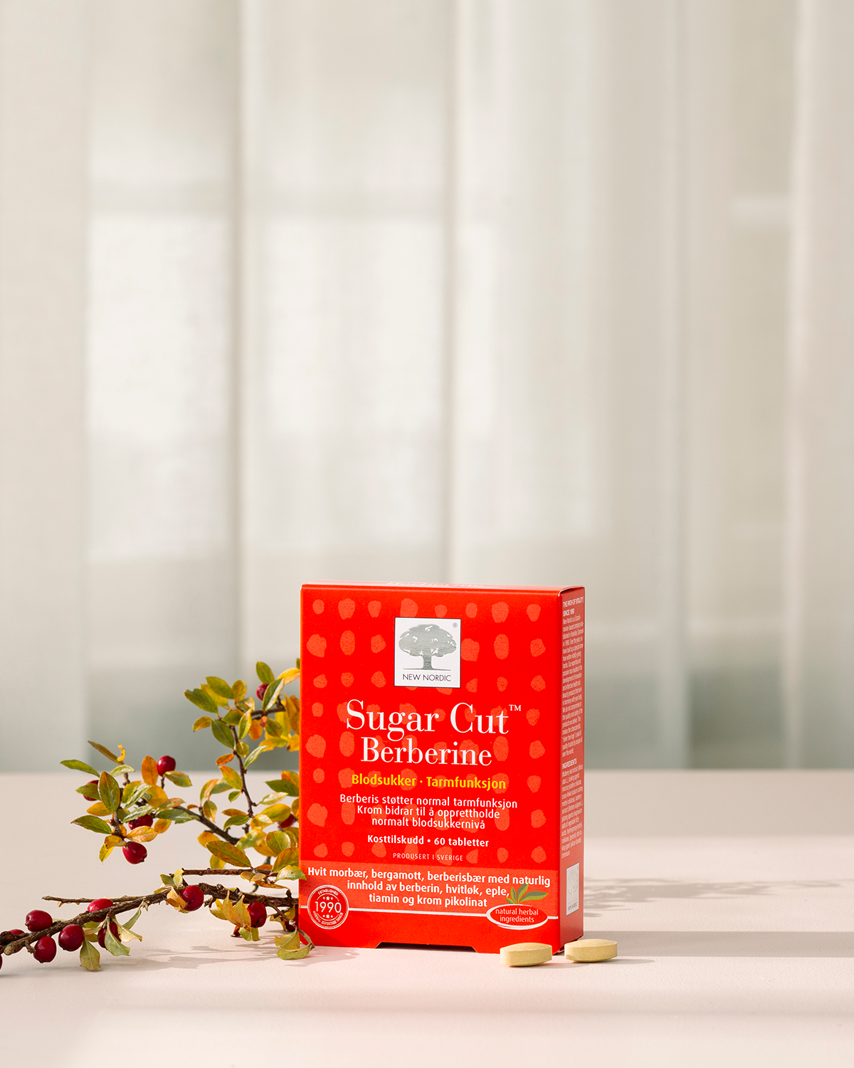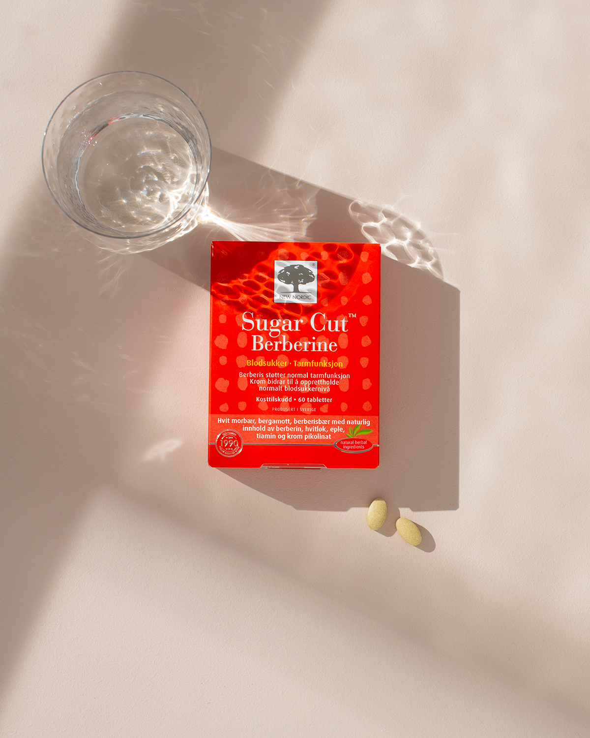INGREDIENSER: Morbærekstrakt (Morus alba L.), fyllstoff (mikrokrystallinsk cellulose, tverrbundet natriumkarboksymetylcellulose), bergamottekstrakt (Citrus bergamia Risso & Poit.), hvitløksekstrakt (Allium sativum L.), epleekstrakt (Malus domestica L.), berberisbærekstrakt (Berberis vulgaris L.), overflatebehandlingsmiddel (magnesiumsalter av vegetabilske fettsyrer, hydroksypropylmetylcellulose, glyserol), antiklumpemiddel (silisiumdioksid), tiaminmononitrat, krom pikolinat. |