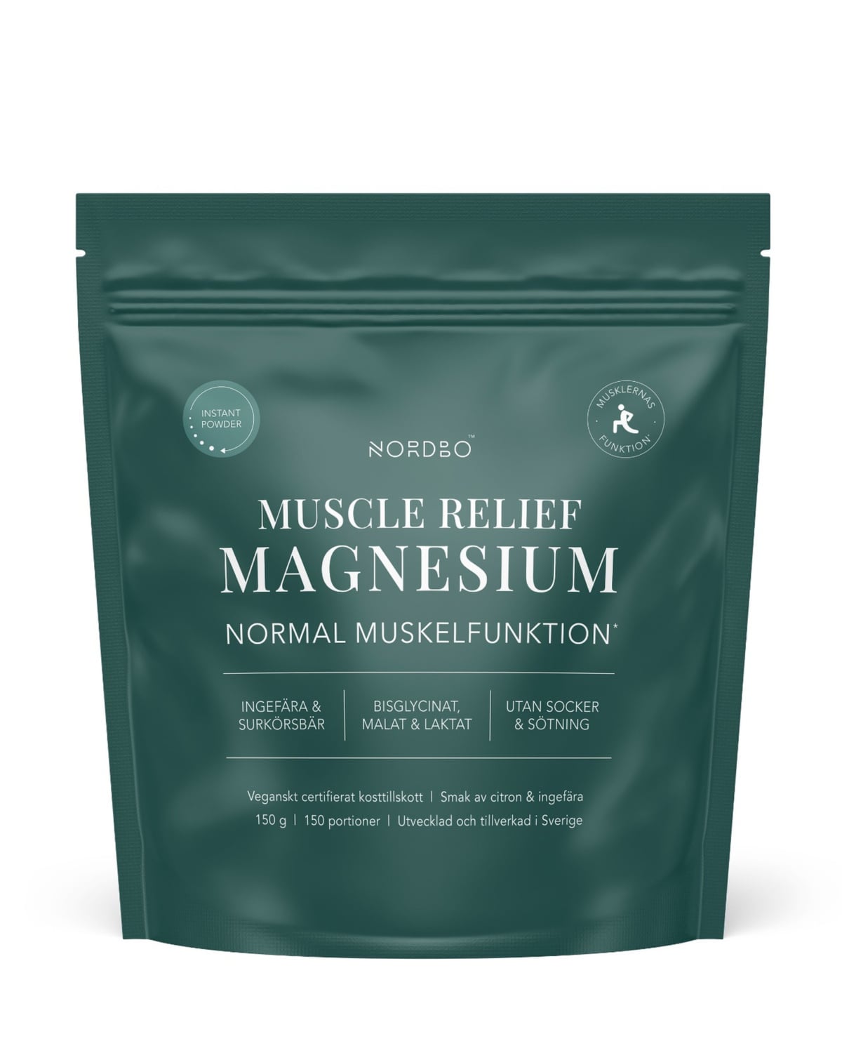 NORDBO Muscle Relief Instant Magnesium er et hurtigvirkende magnesiumtilskudd i pulverform, utviklet for deg som er fysisk aktiv og ønsker et raskt opptak etter trening eller ved økt belastning.