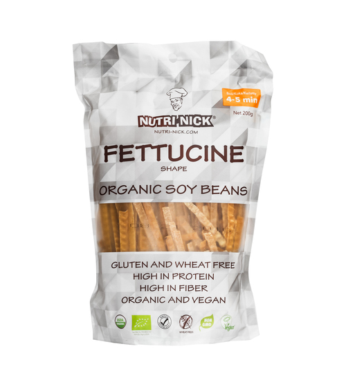 Soy Bean Fetuccine – Økologiske bønnenudler fra Nutri-Nick, laget av soyabønner og vann. Med rikelig innhold av protein og kostfibrer!