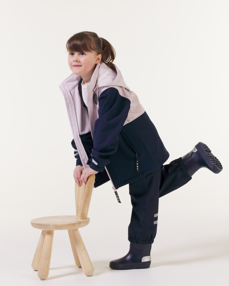 Myk skalljakke for barn med avtagbar hette med trykknapper og glidelås som går hele veien ned med hakebeskyttelse øverst. Sidelommer med glidelås, og refleks print på ermet, hvor man også finner borrelås for å justere nederst. Øverst på venstre erm finner man også et merke. Lea softshell-jakke har Rudolf PFC-behandling som gjør den vannavstøtende. Den har også et fleecefôr på innsiden som gjør den varm og god. Laget med de norske værforholdene og lek og morro i tankene.