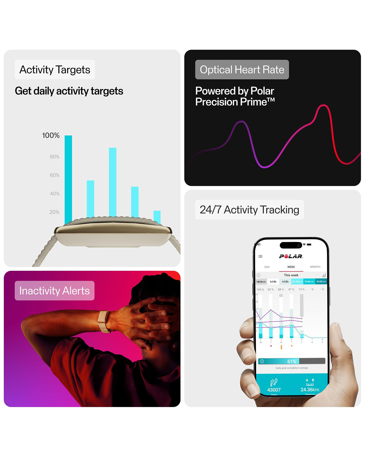 • Avansert optisk pulsmåling – drevet av Polar Precision Prime™