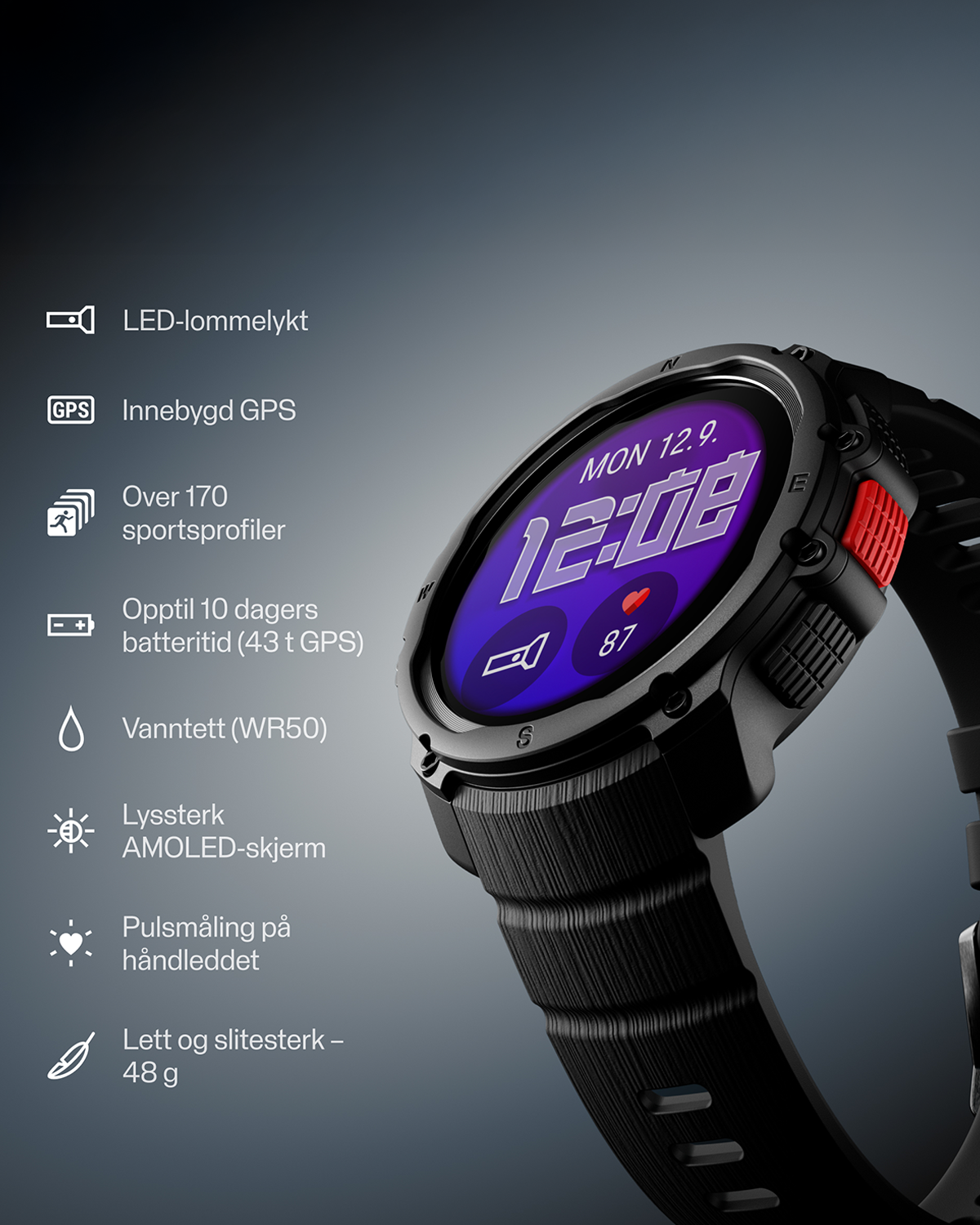 - Robust og støtsikker (MIL-STD-810H) – tåler en aktiv livsstil
