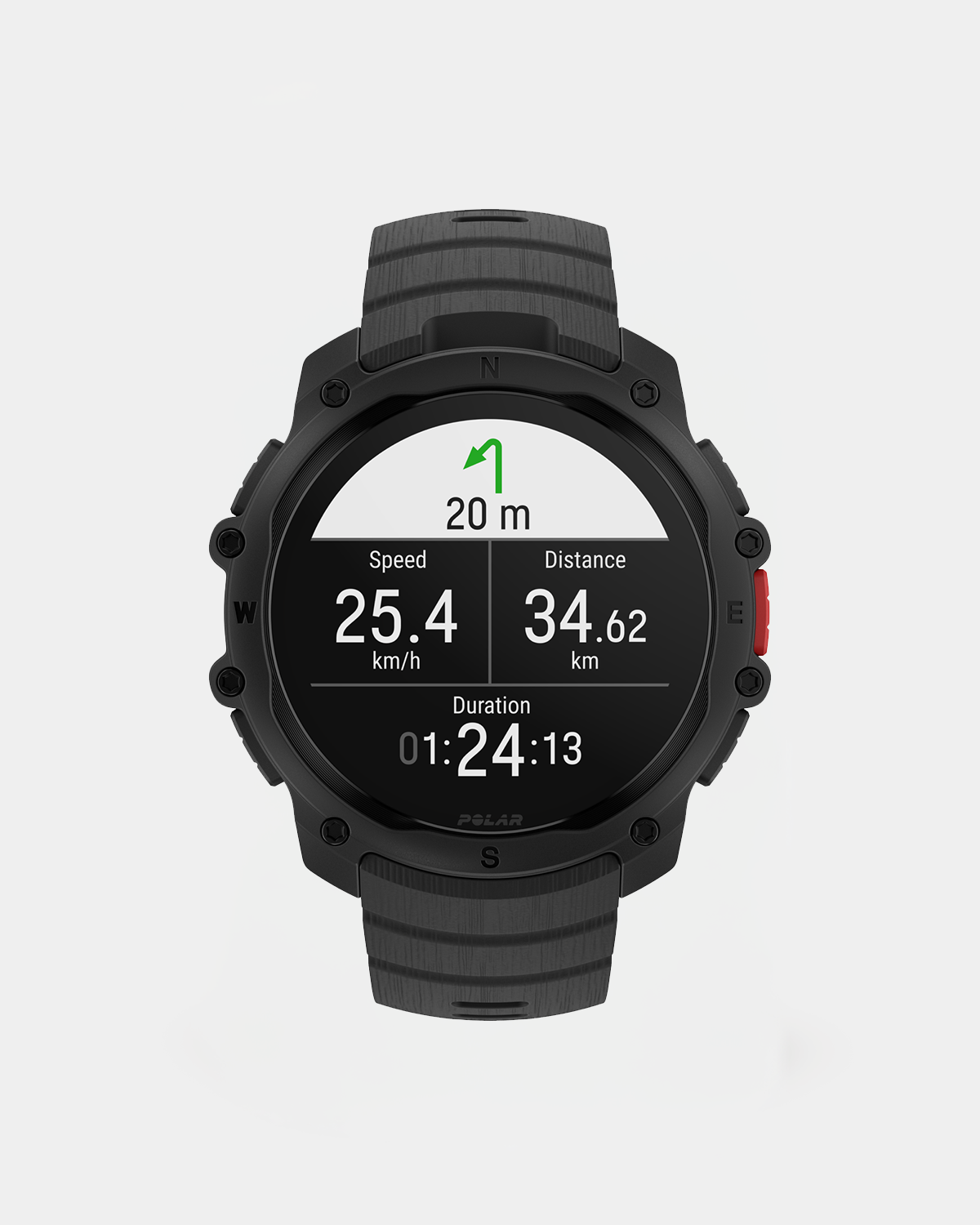 Den skarpe 1,28” AMOLED-berøringsskjermen med Gorilla Glass gir god synlighet i alle lysforhold, mens innebygd GPS, ruteveiledning og barometer gjør den perfekt for løpeturer, økter ute og navigering i urbane omgivelser.