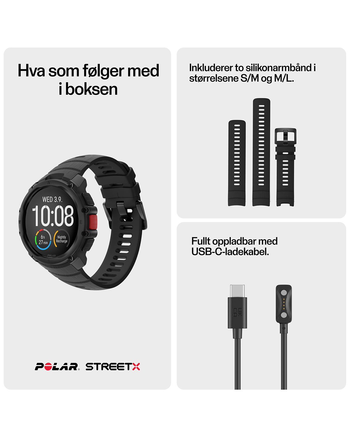 Polar Street X er laget for deg som vil ha én klokke til alt – trening, prestasjon og hverdagsbruk. En moderne sportsklokke som kombinerer funksjon, design og pålitelighet i én løsning.