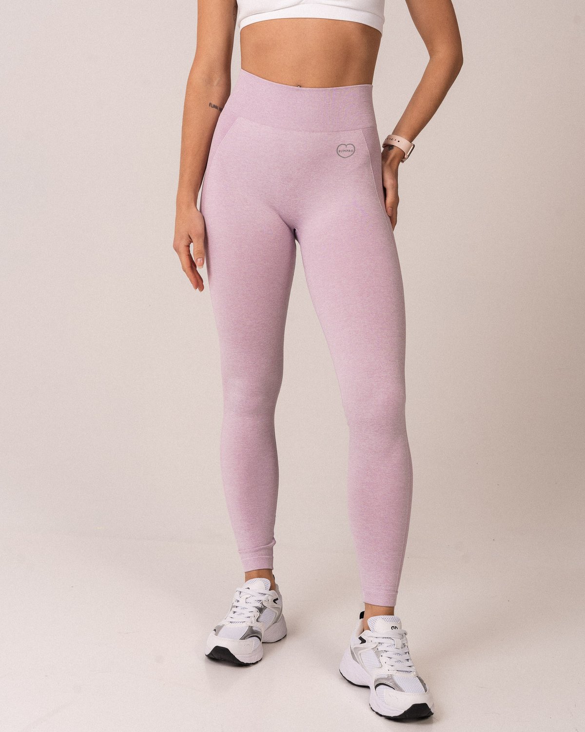 Bumpro Power Up! Tights Purple Melange: Den perfekte partneren til den hvite BH-en. Denne tightsen kommer i en lekker lilla melange-farge og har en passform som sitter som støpt. Det høye livet sørger for at tightsen holder seg på plass uansett bevegelse, og det sømløse materialet gir en flatterende silhuett.