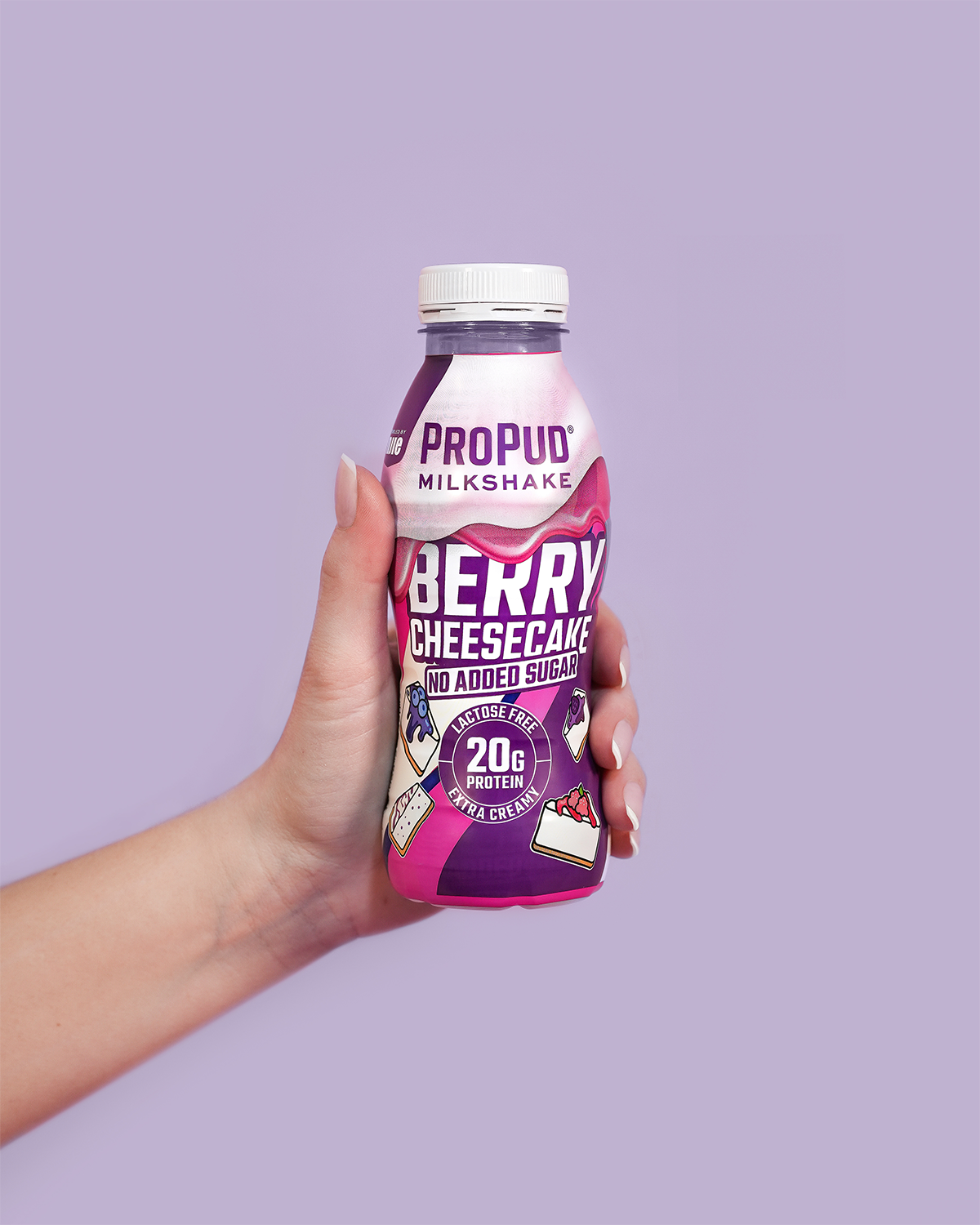 ProPud Protein Milkshake Berry Cheesecake kombinerer smaken av klassisk amerikansk cheesecake med friske, saftige bær i en fyldig og kremet proteindrikk. En perfekt dessertinspirert milkshake som gir deg ekte kosefølelse – helt uten tilsatt sukker.