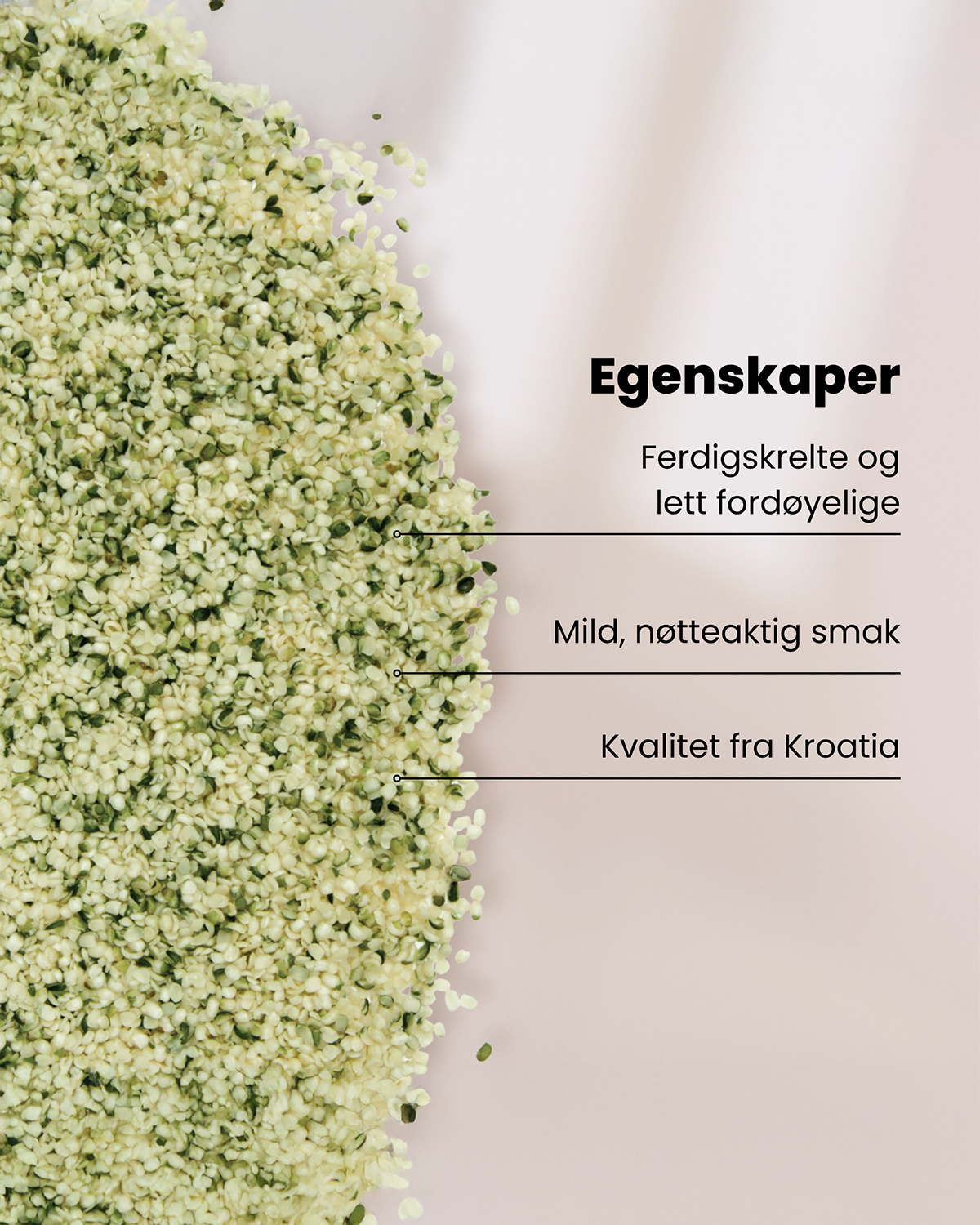 Disse avskallede hampfrøene er nøye utvalgt og har en mild, nøtteaktig smak som gjør dem enkle å bruke som topping eller ingrediens.