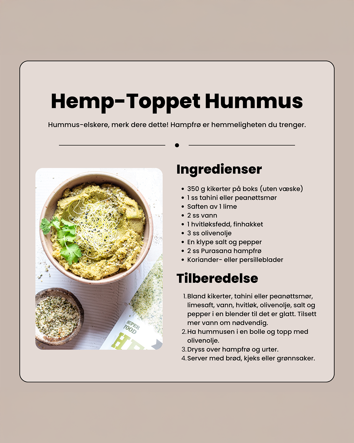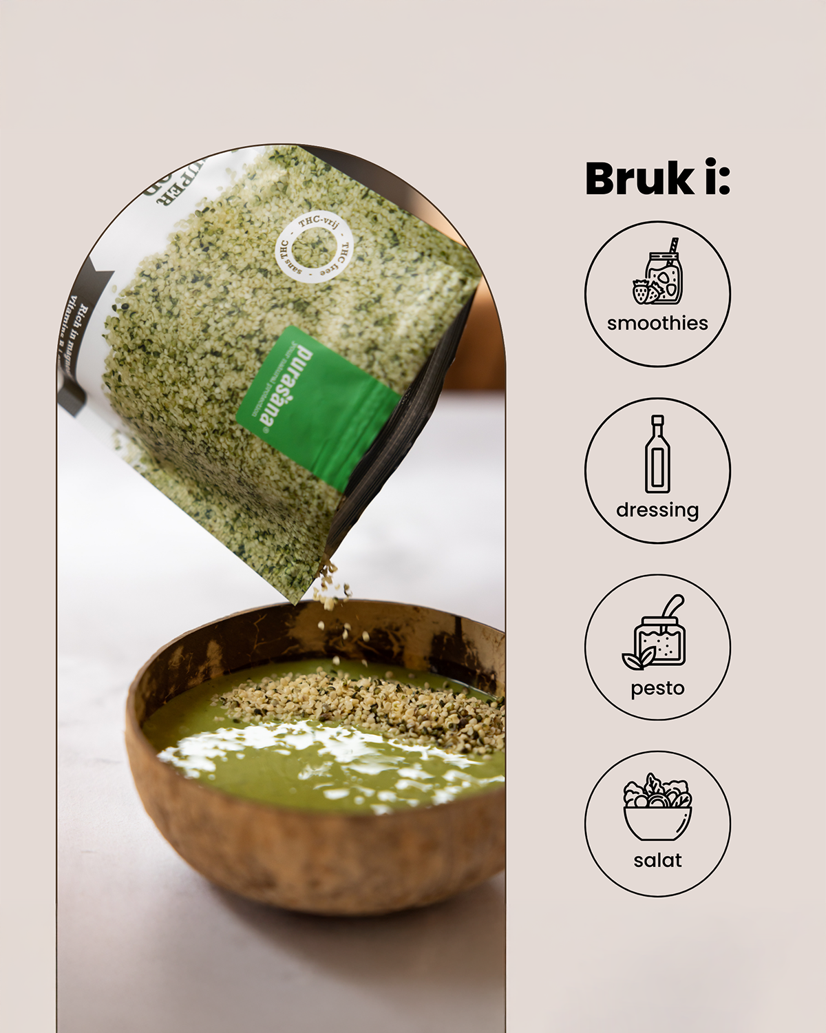 Hampfrø passer godt på yoghurt, salater, grøt og smoothies, og er et populært valg for deg som ønsker et allsidig og naturlig frø i både søte og salte retter.