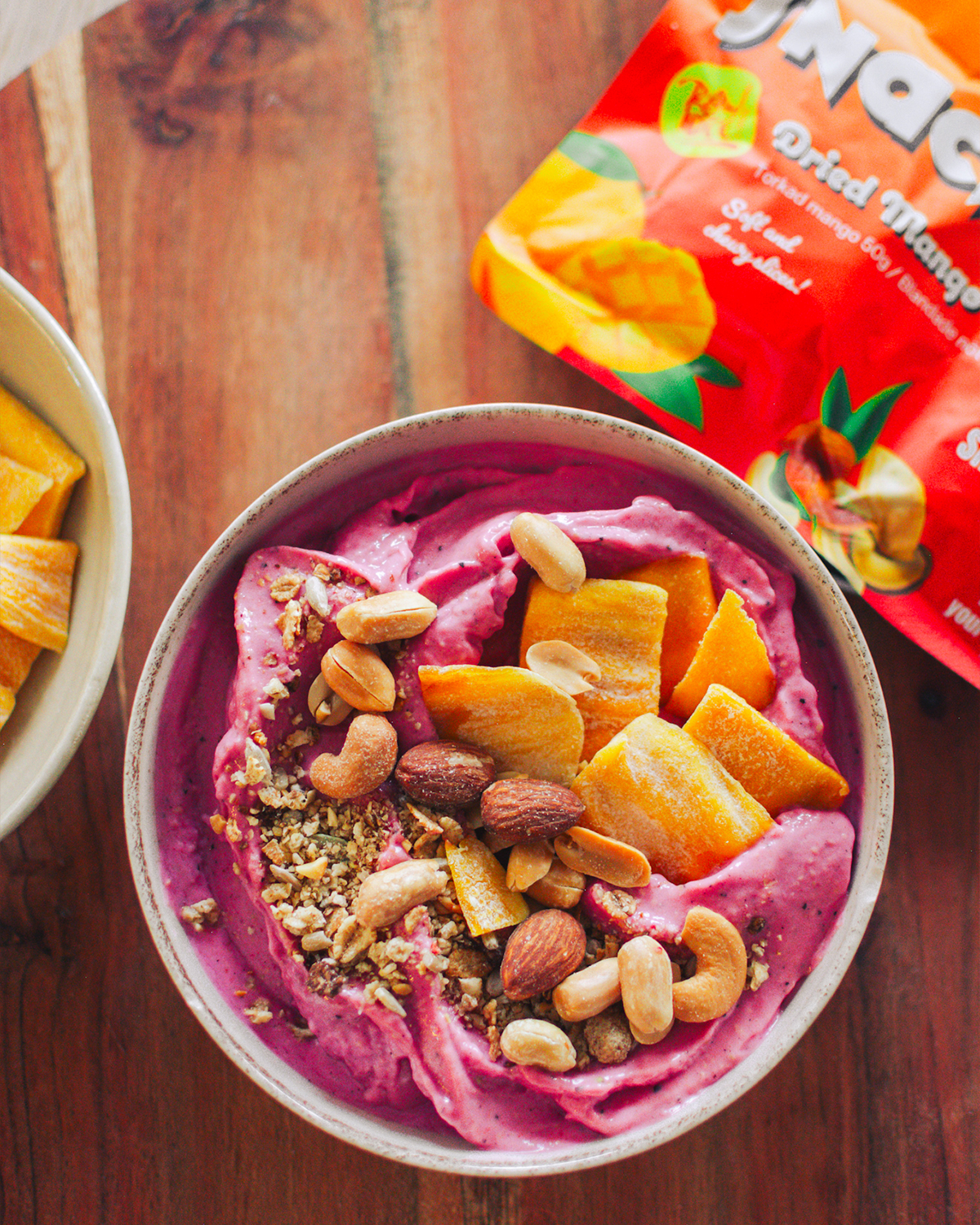 Tørket mango er et smakfullt og naturlig søtt mellommåltid med myk konsistens og frisk fruktsmak. De saftige mangobitene passer perfekt som en rask snack, men fungerer også utmerket som topping i yoghurt, smoothie bowls, frokostblandinger og desserter.