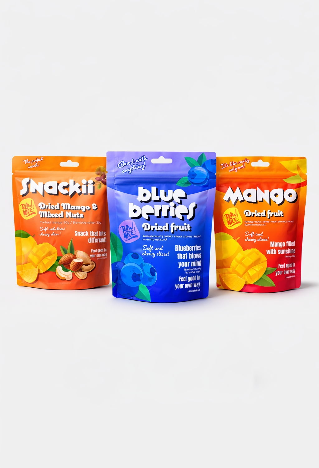 Denne pakken samler tre populære snacks i én praktisk bundle: tørket mango, tørkede blåbær og en smakfull snackmix med tørket mango og nøtter. Her får du en variert kombinasjon av naturlig sødme fra frukt og sprø tekstur fra nøtter – perfekt når du vil ha litt variasjon i snackskuffen.