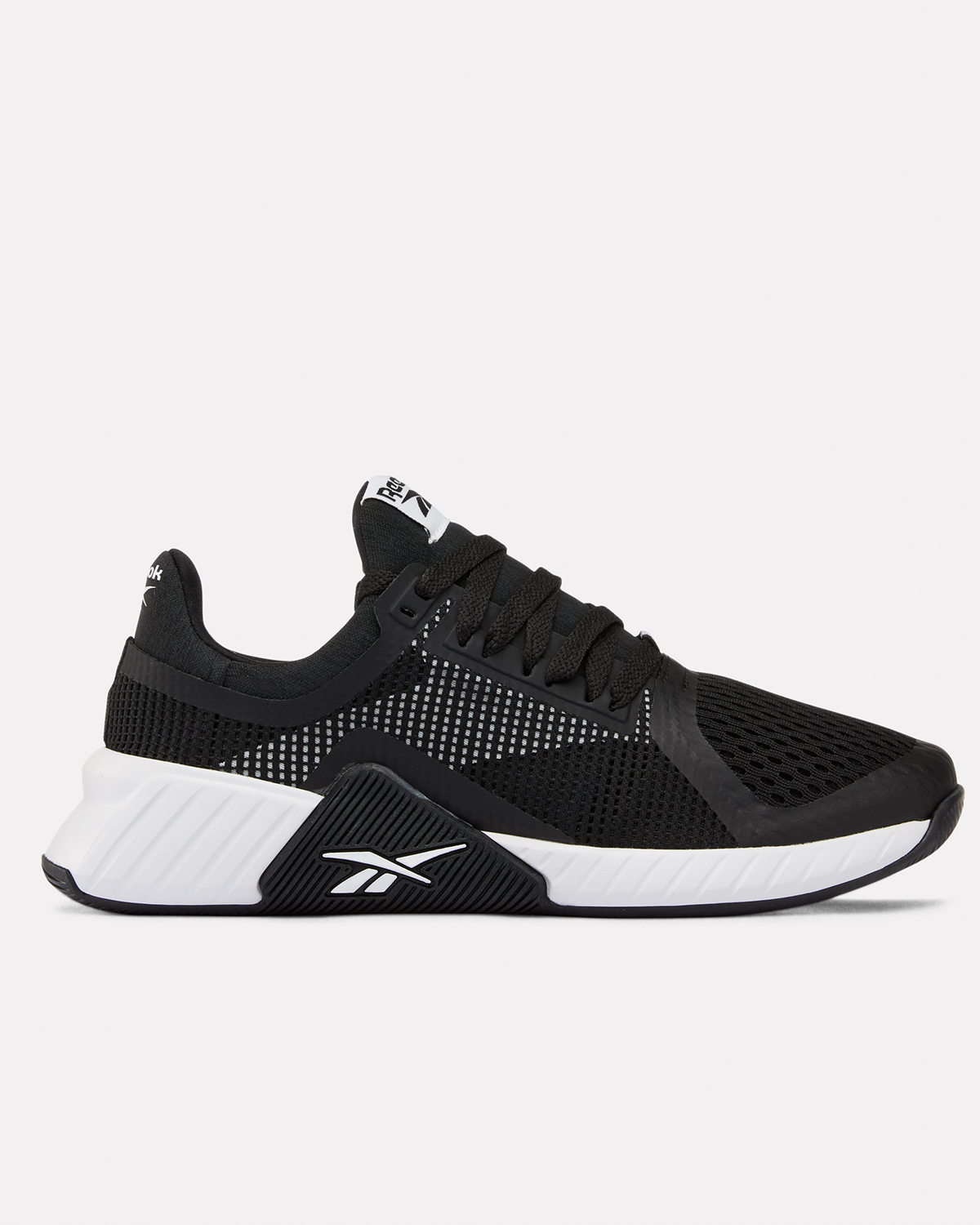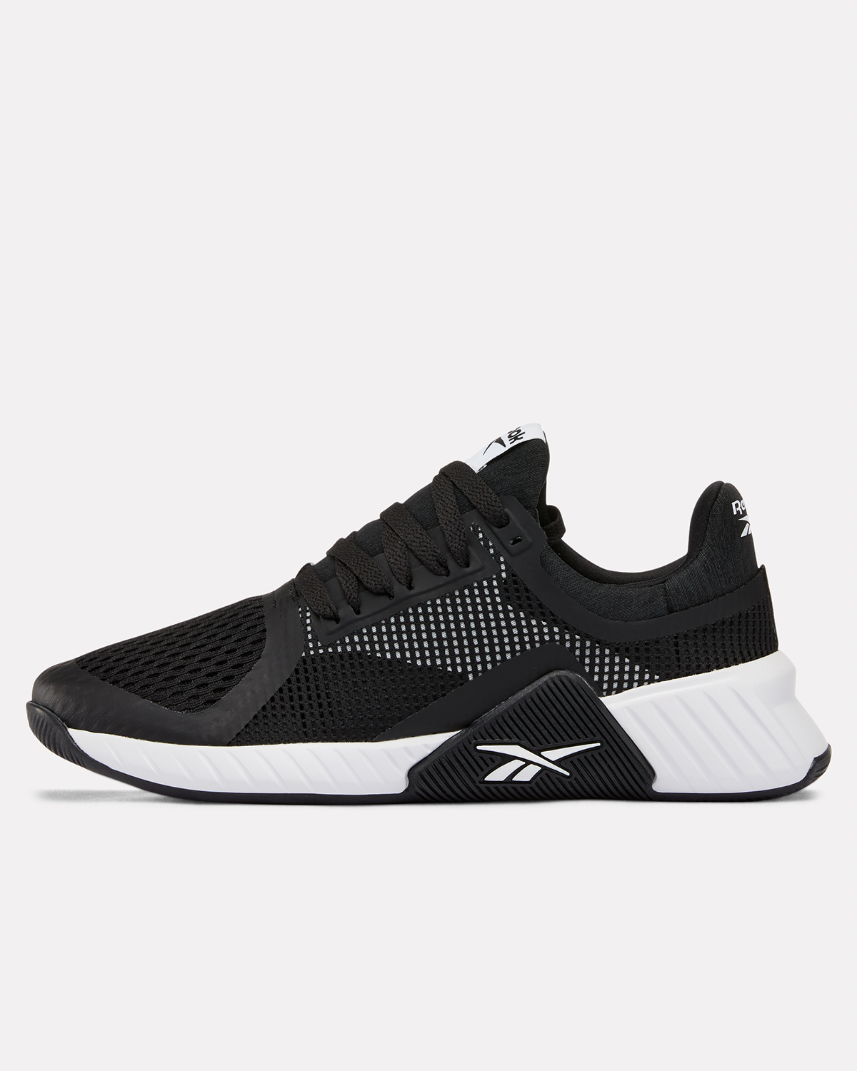 Konstruert for den multifunksjonelle utøveren. Reebok Flip Charge for dame er designet for å gi en stabil base ved tunge løft, samtidig som den er smidig nok for dynamiske kondisjonsøkter. Denne utgaven har en stilren overdel i svart teknisk mesh for maksimal pusteevne, forsterket med et strukturert mellanfotsbur som sikrer sidestøtte under eksplosive bevegelser. Den integrerte svarte TPU-forsterkningen arbeider sammen med den hvite lavprofils-mellomsålen for å levere overlegen bakkekontakt og nødvendig grep over hele treningssenteret.